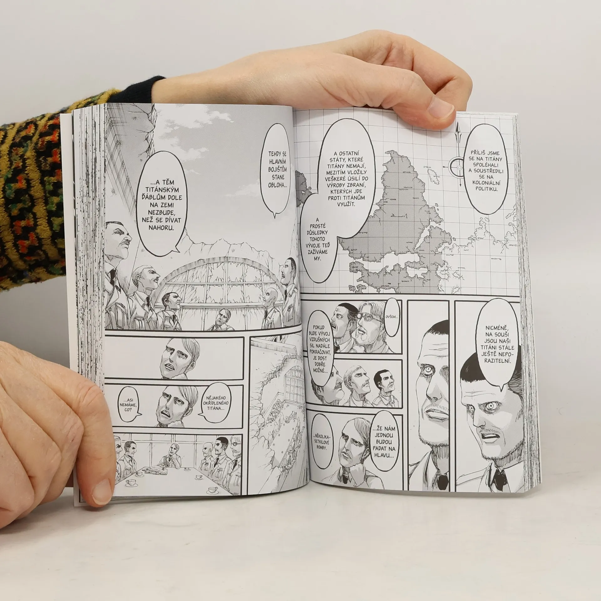 Zatímco Eren a jeho přátelé spřádají smělé plány do budoucna, jejich bývalý spolubojovník Reiner i tajemný Zeke mají docela jiné starosti. Je třeba zachovat převahu říše nad výbojnými sousedy, jenže k tomu by se hodilo mít „Prapůvodního titána“, který se stále ještě nalézá v nepřátelských rukou na ostrově Paradis. Jak se ho však zmocnit, když všechny předchozí plány selhaly?
