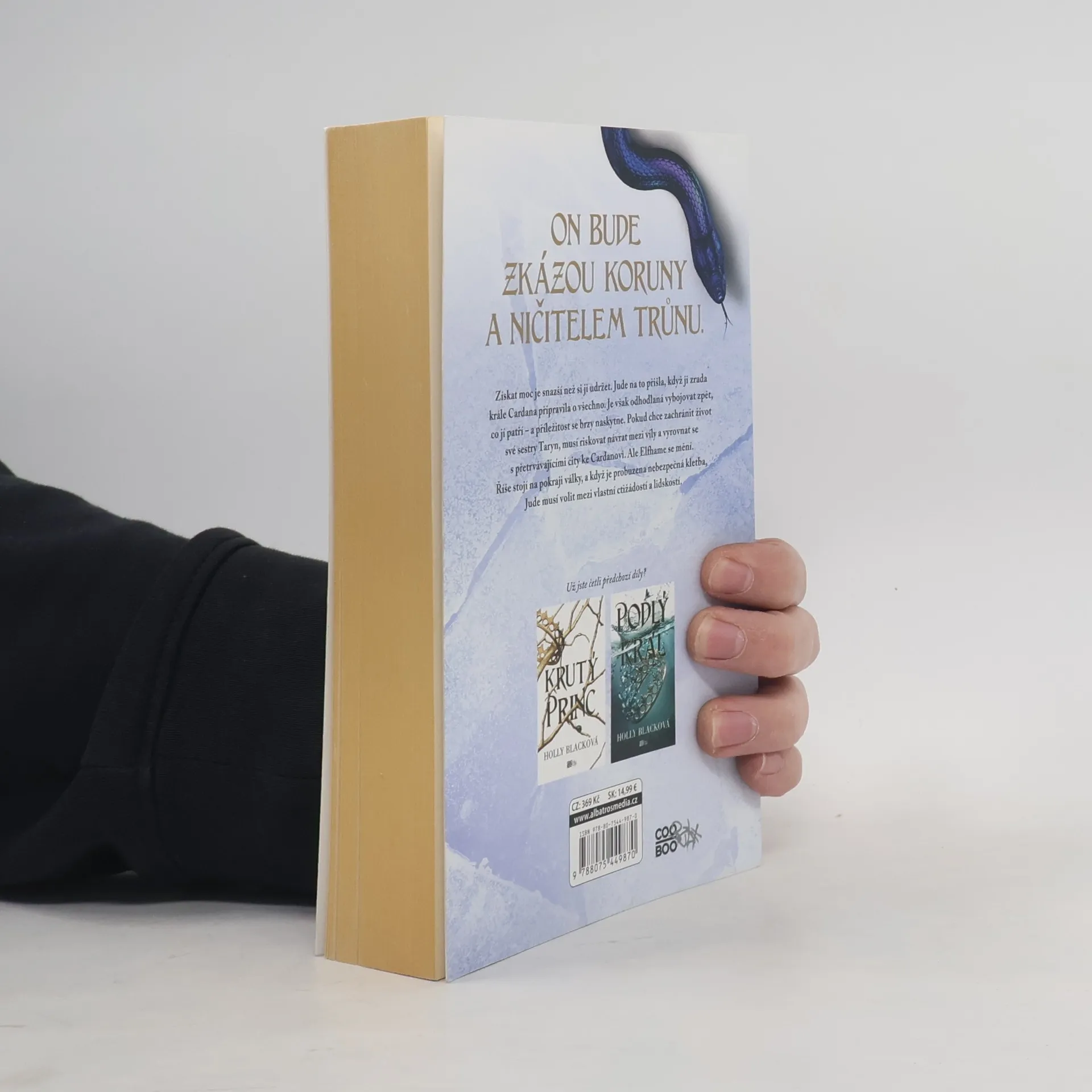 On bude zkázou koruny a ničitelem trůnu. Moc je mnohem jednodušší získat než si ji udržet. Jude se tuhle lekci naučila, když se vzdala kontroly nad podlým králem Cardanem výměnou za neomezené pravomoci. Teď je z ní vyhoštěná královna Říše víl, skončila v lidském světě bezmocná a trpící Cardanovou zradou, ale odhodlaná získat zpátky všechno, o co ji připravil. A příležitost se brzy naskytne v podobě sestry-dvojčete Taryn, jejíž smrtelný život je v nebezpečí. Pokud chce svou sestru zachránit, musí se Jude vrátit mezi víly, riskovat život a vyrovnat se se svými přetrvávajícími city k Cardanovi. Ale v Elfhame je všechno jinak. Říše stojí na pokraji války, a jakmile Jude vklouzne hluboko za nepřátelskou linii, pohltí ji krvavá politika.
