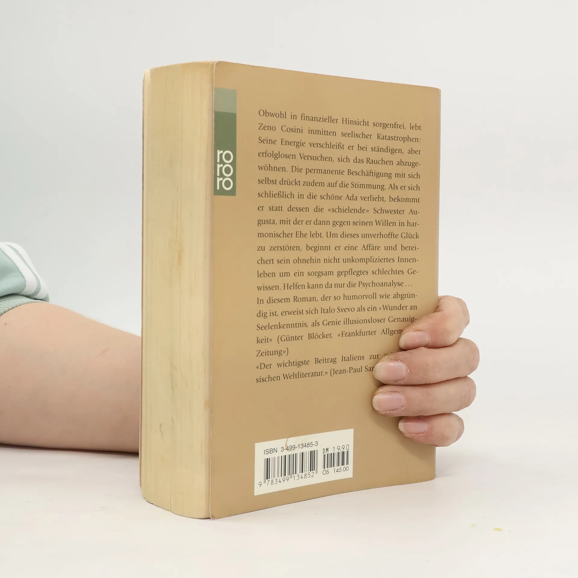 Obwohl in finanzieller Hinsicht sorgenfrei, lebt Zeno Cosini inmitten seelischer Katastrophen: Seine Energie verschleißt er bei ständigen, aber erfolglosen Versuchen, sich das Rauchen abzugewöhnen. Die permanente Beschäftigung mit sich selbst drückt zudem auf die Stimmung. Als er sich schließlich in die schöne Ada verliebt, bekommt er statt dessen die "schielende" Schwester Augusta, mit der er dann gegen seinen Willen in harmonischer Ehe lebt. Um diese unverhoffte Glück zu zerstören, beginnt er eine Affäre und bereichert sein ohnehin nicht umkompliziertes Innenleben um ein sorgsam gepflegtes schlechtes Gewissen. Helfen kann da nur die Psychoanalyse ... In diesem Roman, der so der humorvoll wie abgründig ist, erweist sich Italo Svevo als ein "Wunder an Seelenkenntnis, als Genie illusionsloser Genauigkeit" (Günter Blöcker, Frankfurter Allgemeine Zeitung).