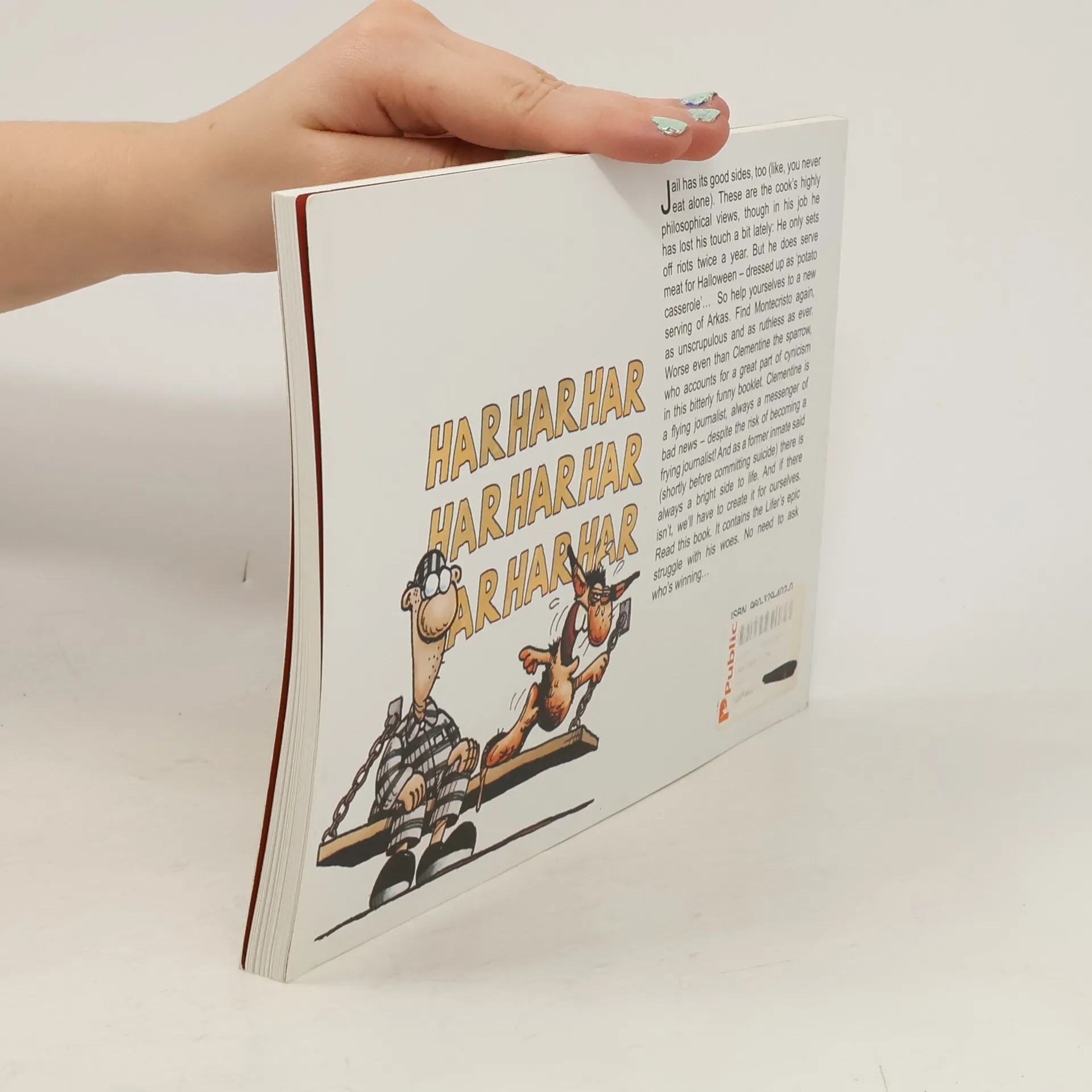 Jail has its good sides, too (like, you never eat alone).These are cook is highly philosophical views, though in his job he has lost his touch a bit lately he only sets off riots twice a year.But he does serve meat for Halloween dressed up as potato casserole... Sohelp yourselves to a new serving of Arkas.Find Montecristo again as unscrupulous and as ruthless as ever.Worse even than Clementine the sparrow who accounts for agreat part of cynicism in this bitterly funny booklet.Clementine isa flying journalist always a messenger of bad news - despite the risk of becoming a frying journalist!And as a former inmate said (shortly before committing suicide) there is always a bright side to life.And if there is not we will have to create it for ourselves.Read this book.It contains the Lifer is epic struggle with his woes.No need to ask who is winning...