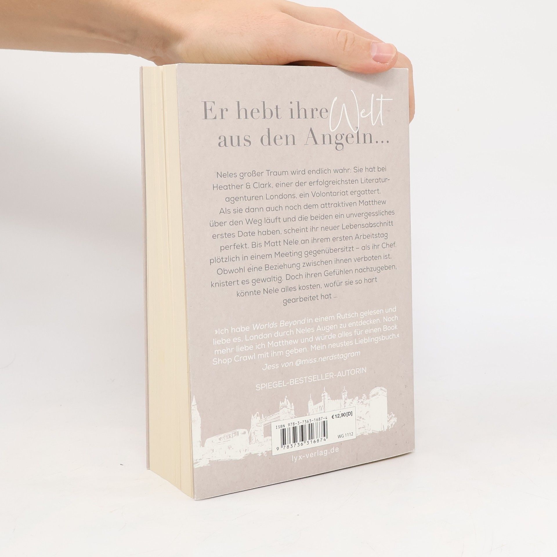 Er hebt ihre Welt aus den Angeln... Neles großer Traum wird endlich wahr: Sie hat bei Heather & Clark, einer der erfolgreichsten Literaturagenturen Londons, ein Volontariat ergattert. Als sie dann auch noch dem attraktiven Matthew über den Weg läuft und die beiden ein unvergessliches erstes Date haben, scheint ihr neuer Lebensabschnitt perfekt. Bis Matt Nele an ihrem ersten Arbeitstag plötzlich in einem Meeting gegenübersitzt - als ihr Chef. Obwohl eine Beziehung zwischen ihnen verboten ist, knistert es gewaltig. Doch ihren Gefühlen nachzugeben, könnte Nele alles kosten, wofür sie so hart gearbeitet hat ... „Ich habe WORLDS BEYOND in einem Rutsch gelesen und liebe es, London durch Neles Augen zu entdecken. Noch mehr liebe ich Matthew und würde alles für einen Book Shop Crawl mit ihm geben. Mein neustes Lieblingsbuch.“ JESS von @MISS. NERDSTAGRAM Band 3 der WORLDS-Reihe rund um junge Influencer: innen in London von SPIEGEL-Bestseller-Autorin Anabelle Stehl