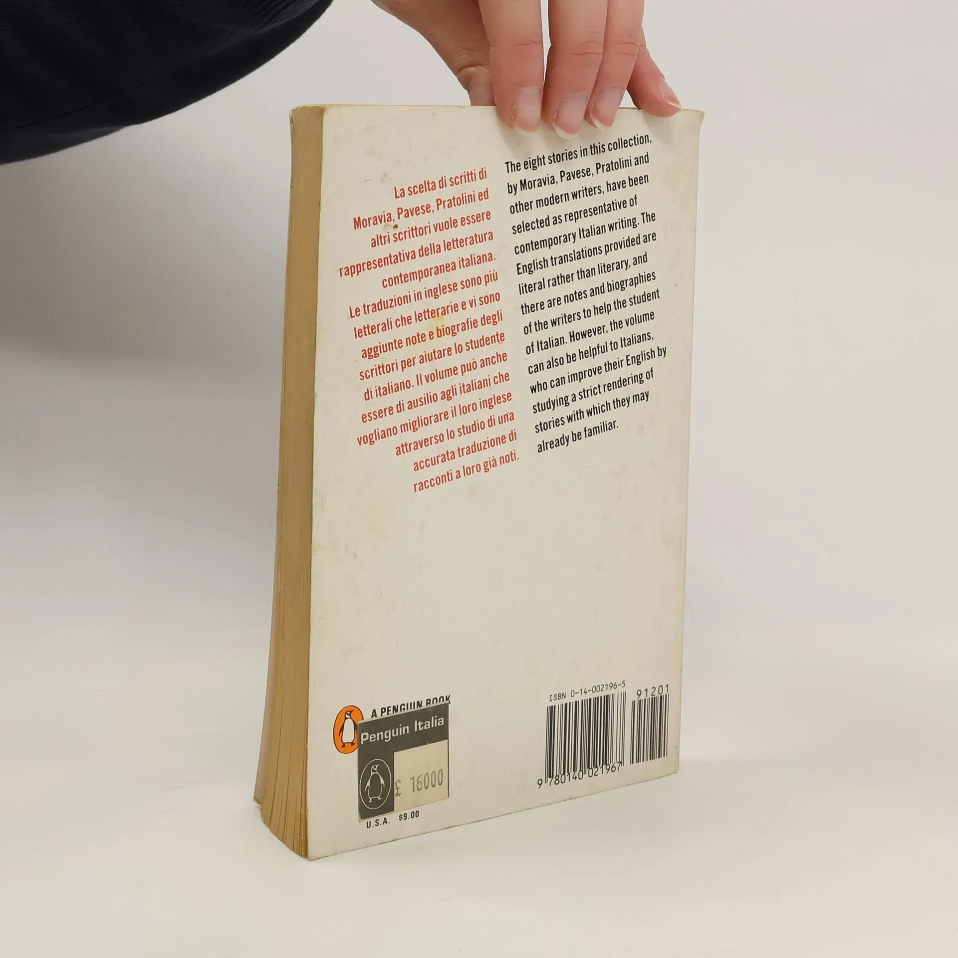 The eight stories in this collection, by Moravian, Pavese, Pratolina, and other modern writers, have been selected as being representative of contemporary Italian writing. The English translations provided are literal rather than literary, and there are notes and biographies to help the student of Italian. However, the volume can also be helpful to Italians, who can improve their English by studying a strict rendering of stories with which thet may already be familiar.