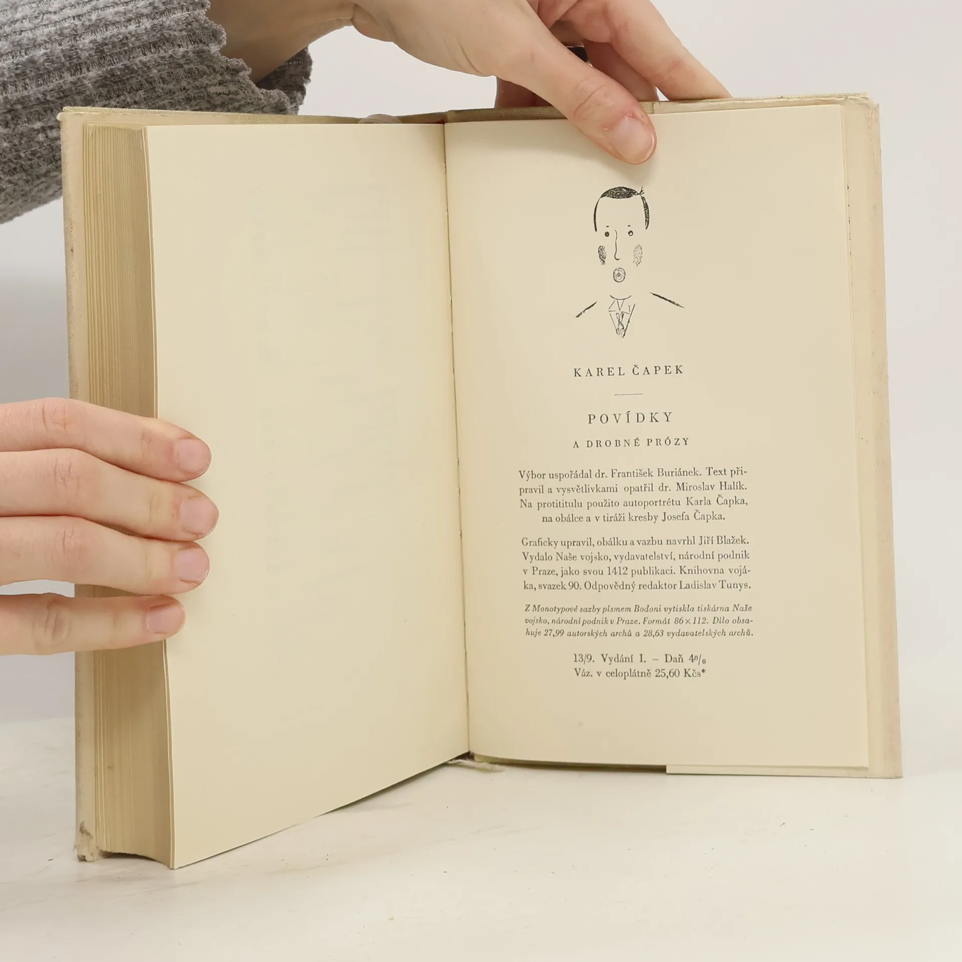 Výbor z díla. Záměrem pořadatelovým bylo nejen vystihnout osobitý Čapkův rys - jeho oslavu obyčejného, prostého člověka a láskyplný zájem o projevy každodenního všedního života - ale i zdůraznit pokrokové prvky jeho díla. Při seřazení próz bylo prohlédnuto jak k jejich chronologii,tak k tomu, aby se v nich odrážela vzestupná linie Čapkova ideového vývoje. Do výboru je pojata většina "Povídek z jedné kapsy" a "Povídek z druhé kapsy", na něž navazují dva pohledy na Prahu, vyňaté z "Obrázků z domova". Vedle úplného textu spisku "Jak se co dělá" najdou se zde ukázky z knih "Věci kolem nás" a "Měl jsem psa a kočku". Za drobnými prózami z "Apokryfů" a "Bajek a podpovídek" je připojen poslední Čapkův fejeton "Pozdravy". Vydavatel: Naše vojsko - Praha