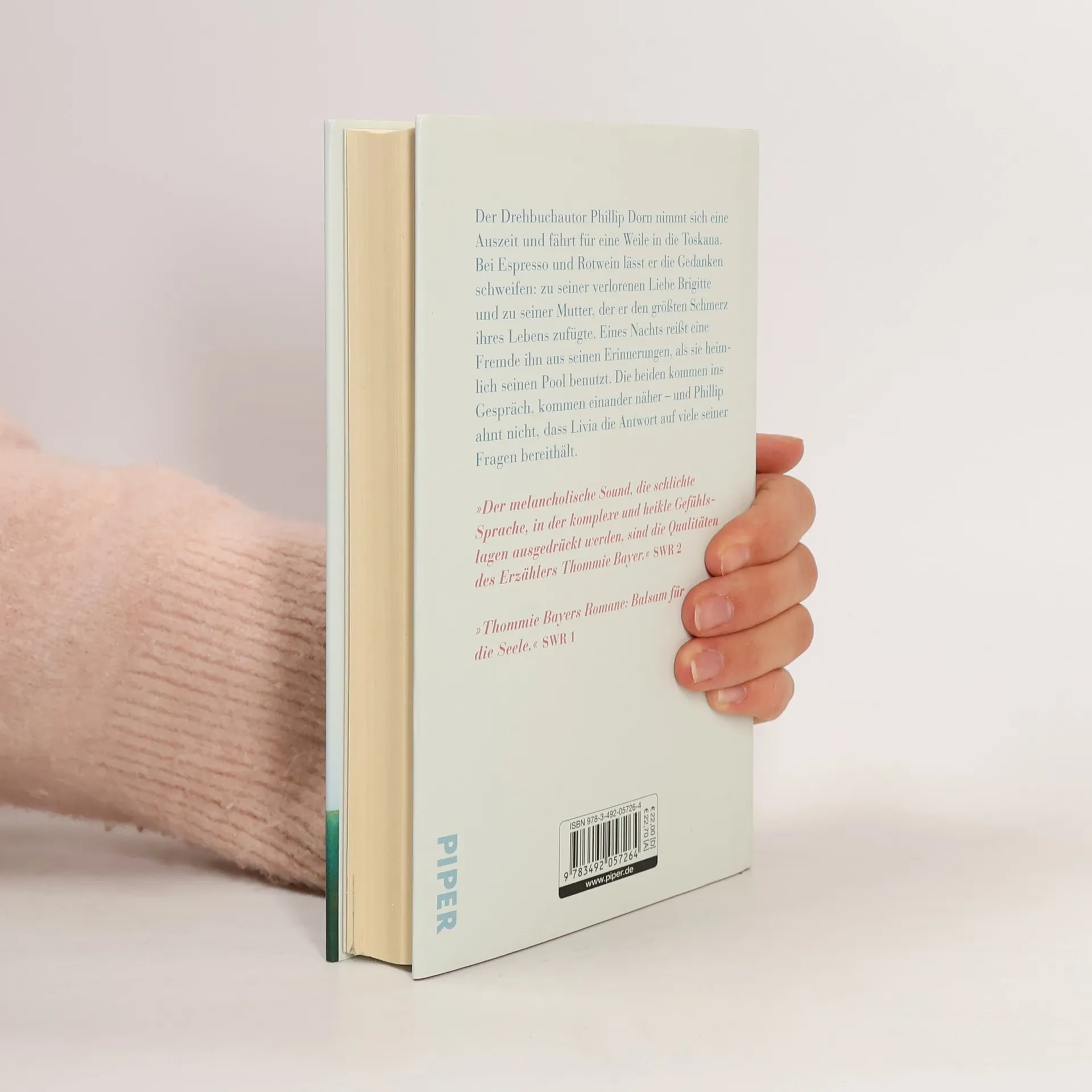 Eine Lebenskrise, ein Ferienhaus in Italien, eine fremde Frau und endlich: Antworten Der Schriftsteller Phillip Dorn nimmt sich eine Auszeit und fährt über die Alpen nach Norditalien. In der Abgeschiedenheit seines Ferienhauses, bei Espresso und Rotwein, lässt er die Gedanken schweifen. Zu Bettina und nicht zuletzt zu seiner Mutter, der er so nahestand und der er doch den größten Schmerz ihres Lebens zufügte. Eines Nachts reißt eine Fremde ihn aus seinen Erinnerungen, als sie heimlich seinen Pool benutzt. Die beiden kommen ins Gespräch, kommen einander näher - was Phillip nicht weiß, ist, dass sie der Schlüssel zu seiner drängendsten Frage ist. »Thommie Bayers Romane trösten. Sie sind Balsam für die Seele.« SWR 2