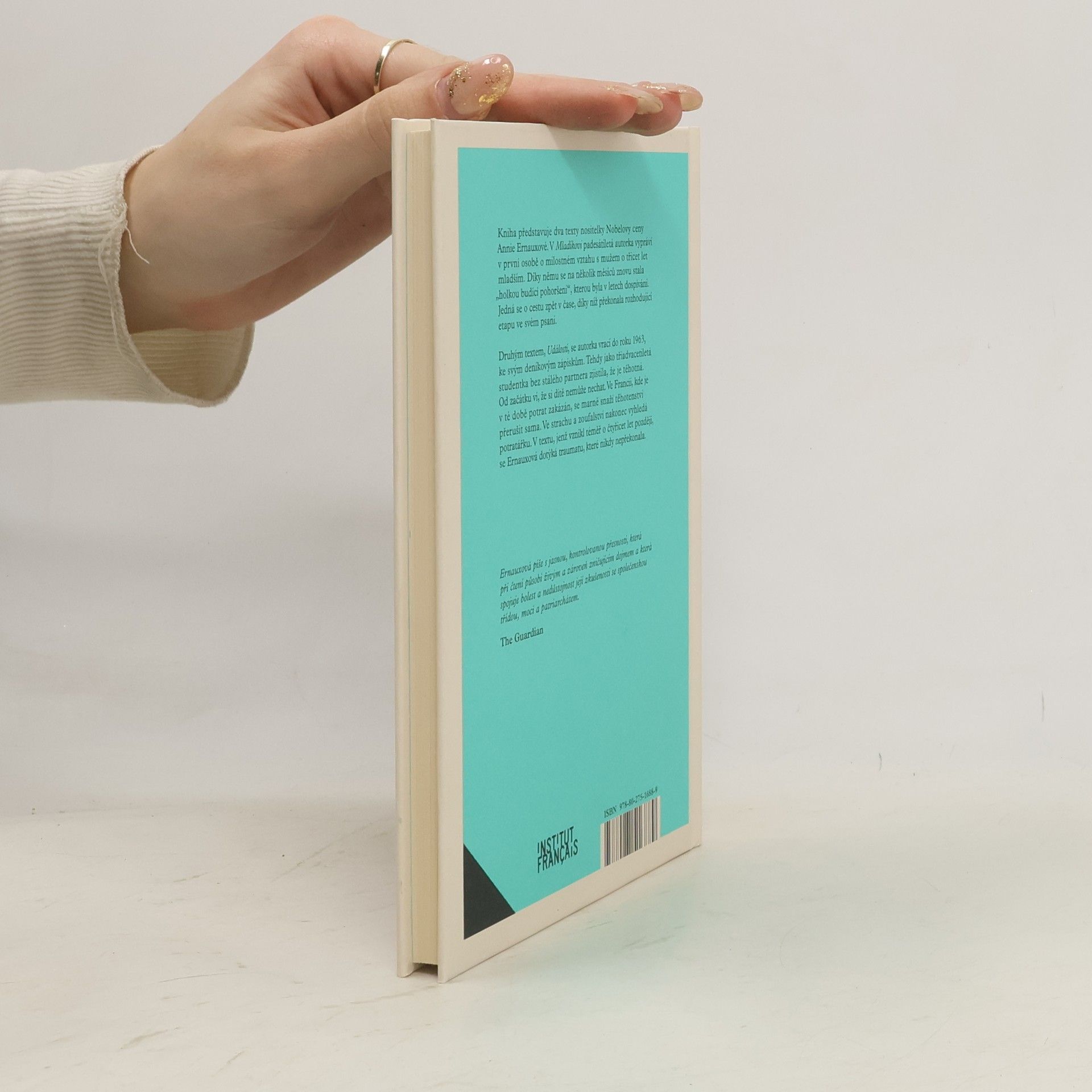 Kniha představuje dva texty nositelky Nobelovy ceny Annie Ernauxové. Mladík (2022) je vyprávěním padesátileté spisovatelky o vášnivém milostném vzplanutí k muži, který je o třicet let mladší než ona. Vztah v ní vyvolává vzpomínky na vlastní mládí a zároveň pocity, jako by se nacházela mimo čas, nestárla nebo žila svůj život pozpátku. Druhým textem, Událostí (2000), se autorka vrací do roku 1963, ke svým deníkovým zápiskům; tehdy ve svých třiadvaceti letech jako svobodná žena zjistila, že je těhotná. Začne ji sžírat stud: chápe, že těhotenství by ji i její rodinu společensky zničilo, a zároveň ví, že si dítě nemůže nechat. Ve Francii, kde je potrat zakázaný, se marně snaží potratit za pomocí pletací jehlice. Ve strachu a zoufalství nakonec vyhledá potratáře a skončí na pohotovosti v nemocnici, kde málem přijde o život. V textu, který vznikl o čtyřicet let později, se Ernauxová dotýká traumatu, jež nikdy nepřekonala.