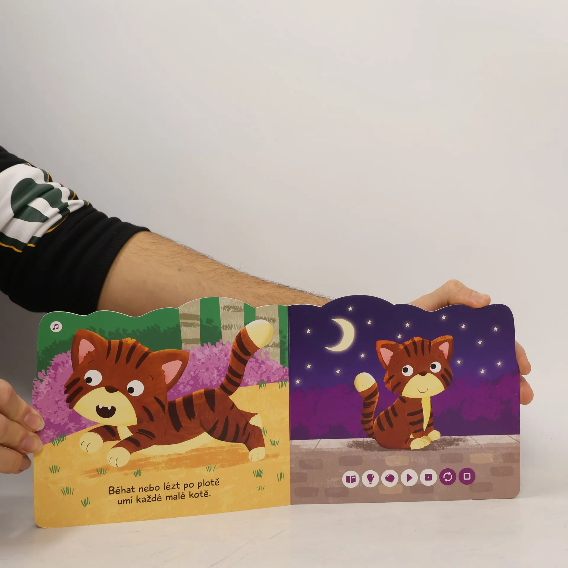 Interaktivní obrázková kniha s tuhými listy a říkadly o kočkách, určena pro čtení s elektronickou tužkou.