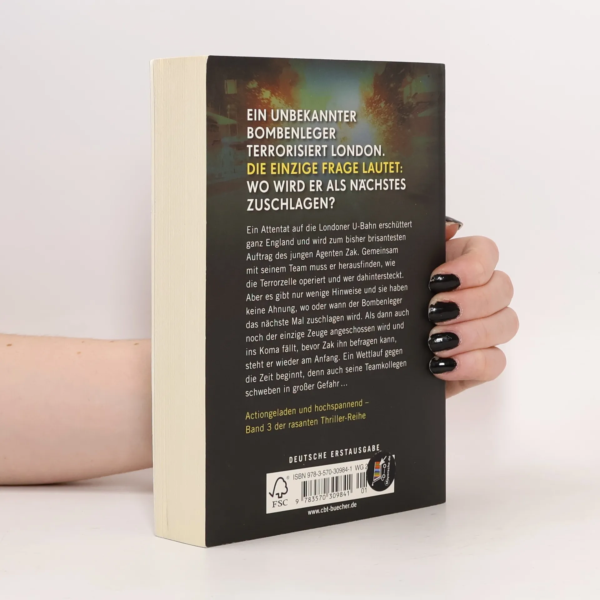 Wettlauf gegen die Zeit Zaks dritter Auftrag stellt ihn vor ungeahnte Herausforderungen. Ein unbekannter Bombenleger hat es auf London abgesehen. Nach einer Explosion in der Londoner U-Bahn ist es an Zak und seinem Team herauszufinden, wie die Terrorzelle operiert und wer dahintersteckt. Aber es gibt nur wenige Hinweise und sie haben keine Ahnung, wo oder wann der Attentäter das nächste Mal zuschlagen wird. Als dann auch noch der einzige Zeuge angeschossen wird und ins Koma fällt, bevor Zak ihn befragen kann, steht Zak wieder am Anfang. Und ihm bleibt nicht mehr viel Zeit … „Agent 21“ ist eine actiongeladene, packende Agenten-Thriller-Reihe mit exotischen Settings und hochbrisanten Einsätzen. Chris Ryan fesselt seine Leser mit technischer Detailgenauigkeit und irrwitziger Action. Alle Bände der »Agent 21«-Reihe: Agent 21 - Im Zeichen des Todes (Band 1) Agent 21 - Reloaded (Band 2) Agent 21 - Codebreaker (Band 3) Agent 21 - Survival (Band 4) Agent 21 - Dead End (Band 5)