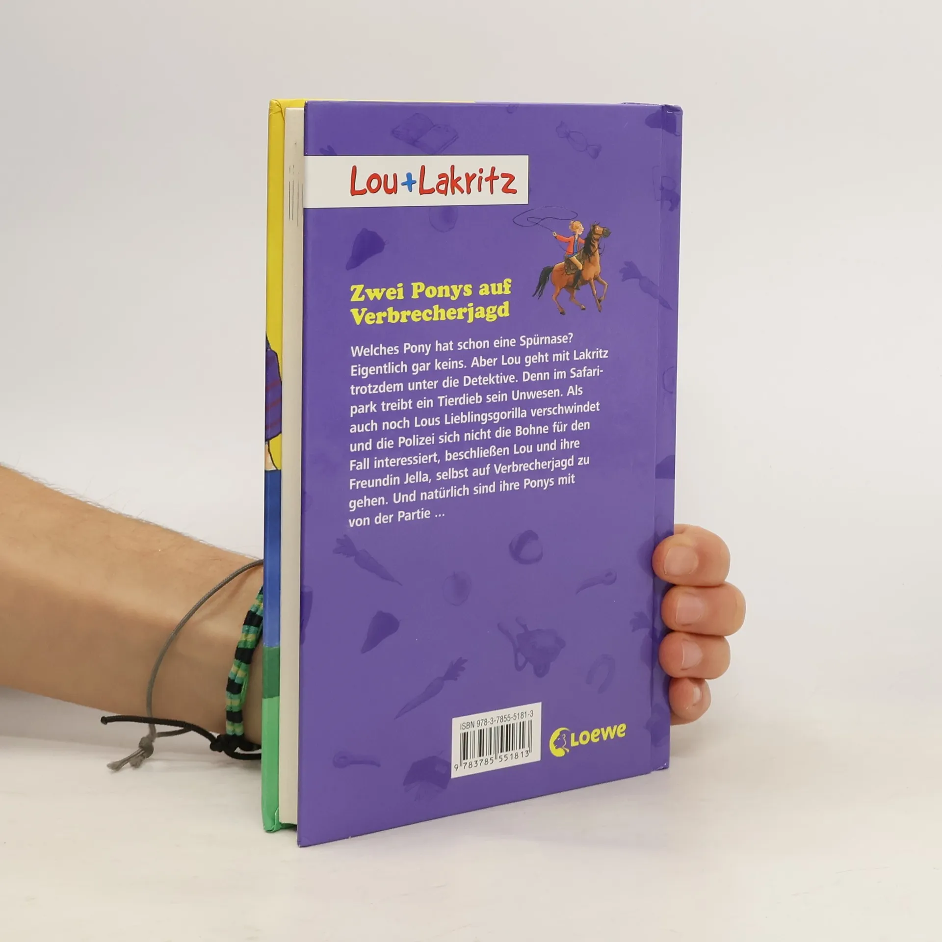 Welches Pony hat schon eine Spürnase? Eigentlich gar keins. Aber Lou geht mit Lakritz trotzdem unter die Detektive. Denn im Safaripark treibt ein Tierdieb sein Unwesen. Als auch noch Lous Lieblingsgorilla verschwindet und die Polizei sich nicht die Bohne für den Fall interessiert, beschließen Lou und ihre Freundin Jella, selbst auf Verbrecherjagd zu gehen. Und natürlich sind ihre Ponys mit von der Partie.