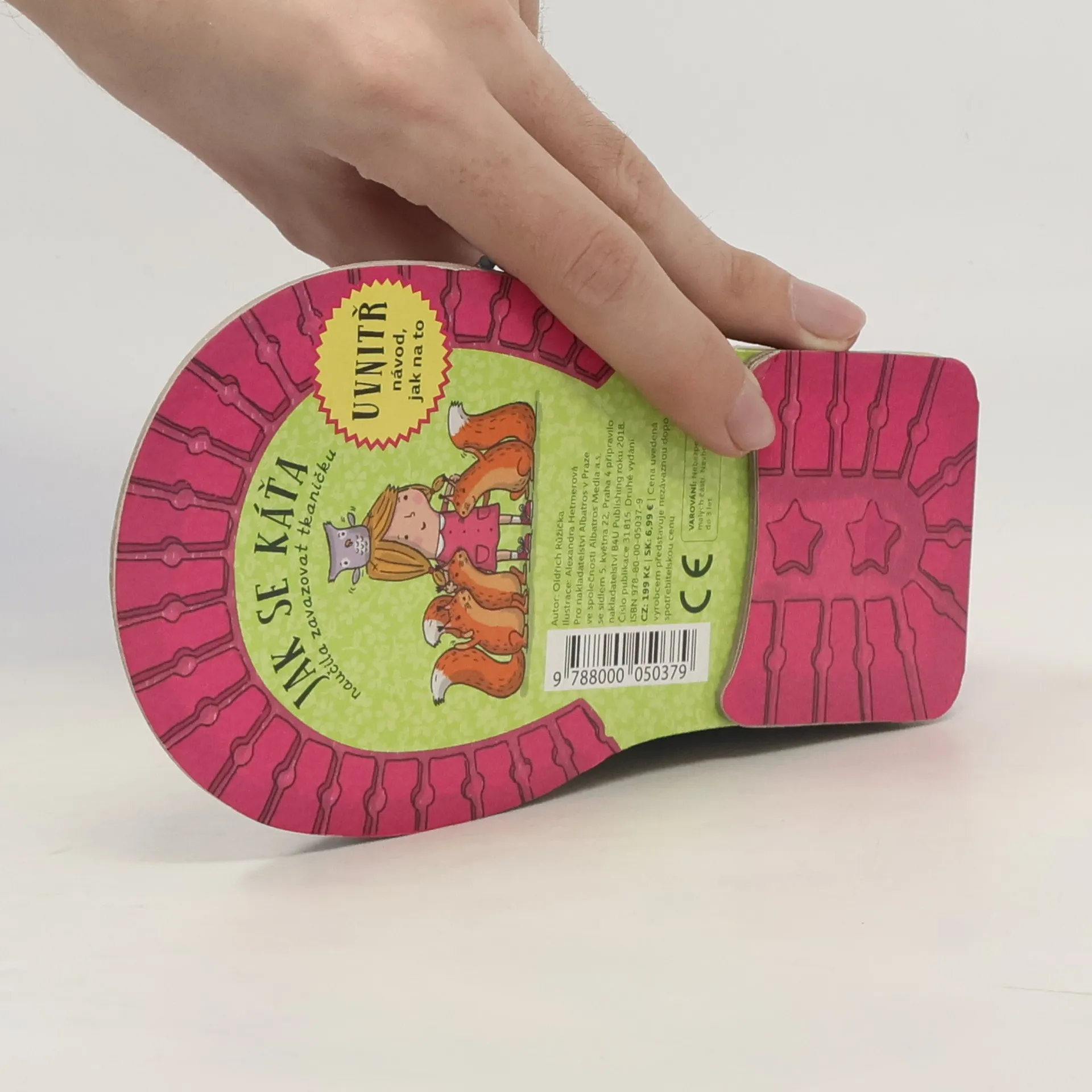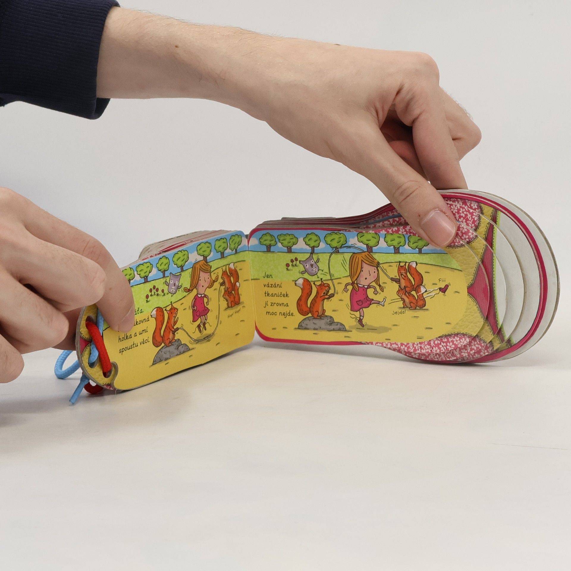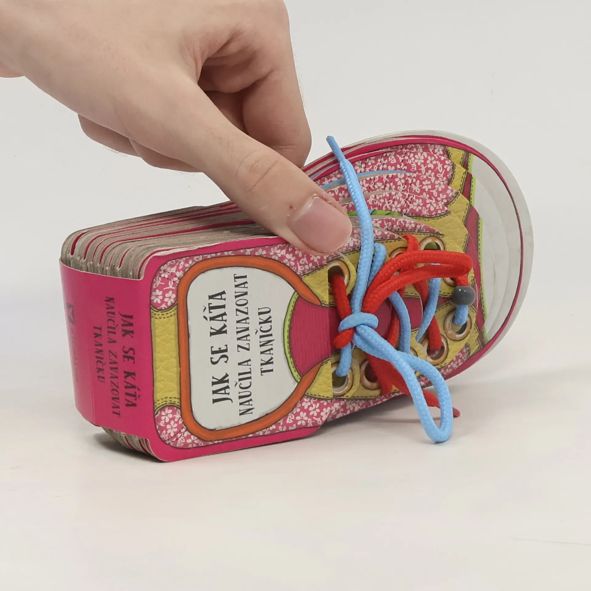 Leporelo ve tvaru dětské botičky naučí děti přístupnou a hravou formou zavazovat tkaničky. Titul obsahuje jednoduchý motivační příběh a pod sešněrovanými stránkami v jednotlivých krocích i ilustrovaný návod jak si tkaničku zavázat.