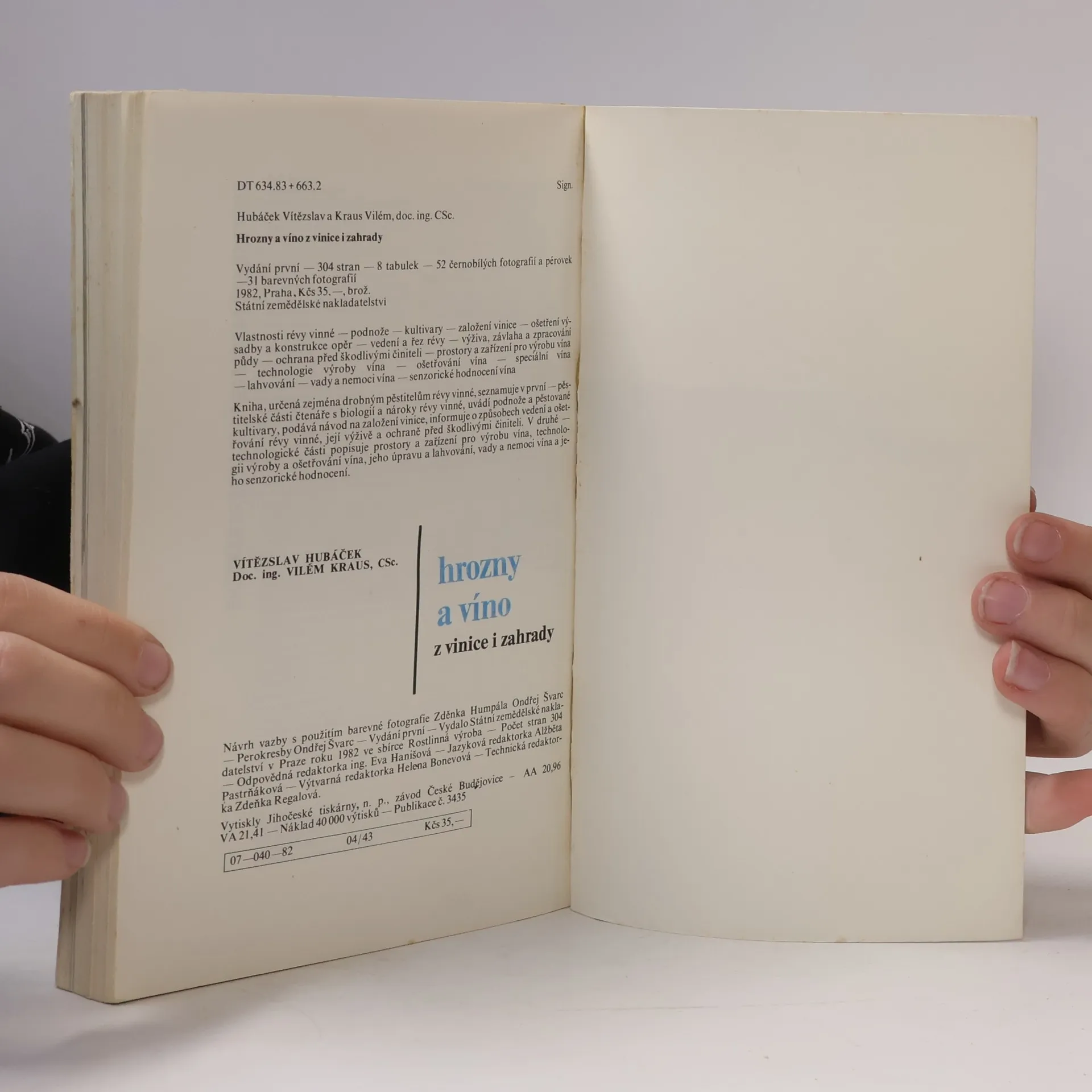 Kniha, určená zejména drobným pěstitelům révy vinné, seznamuje v první - pěstitelské části čtenáře s biologií a nároky révy vinné, uvádí podnože a pěstované kultivary, podává návod na založení vinice, informuje o způsobech vedení a ošetřování révy vinné, její výživě a ochraně před škodlivými činiteli. V druhé - technologické části popisuje prostory a zařízení pro výrobu vína, technologii výroby a ošetřování vína, jeho úpravu a lahvování, vady a nemoci vína a jeho senzorické hodnocení. Návrh vazby s použitím barevné fotografie Zdeňka Humpála Ondřej Švarc. Perokresby Ondřej Švarc. 304 stran, 8 tabulek, 52 černobílých fotografií a pérovek, 31 barevných fotografií. Vydání první.