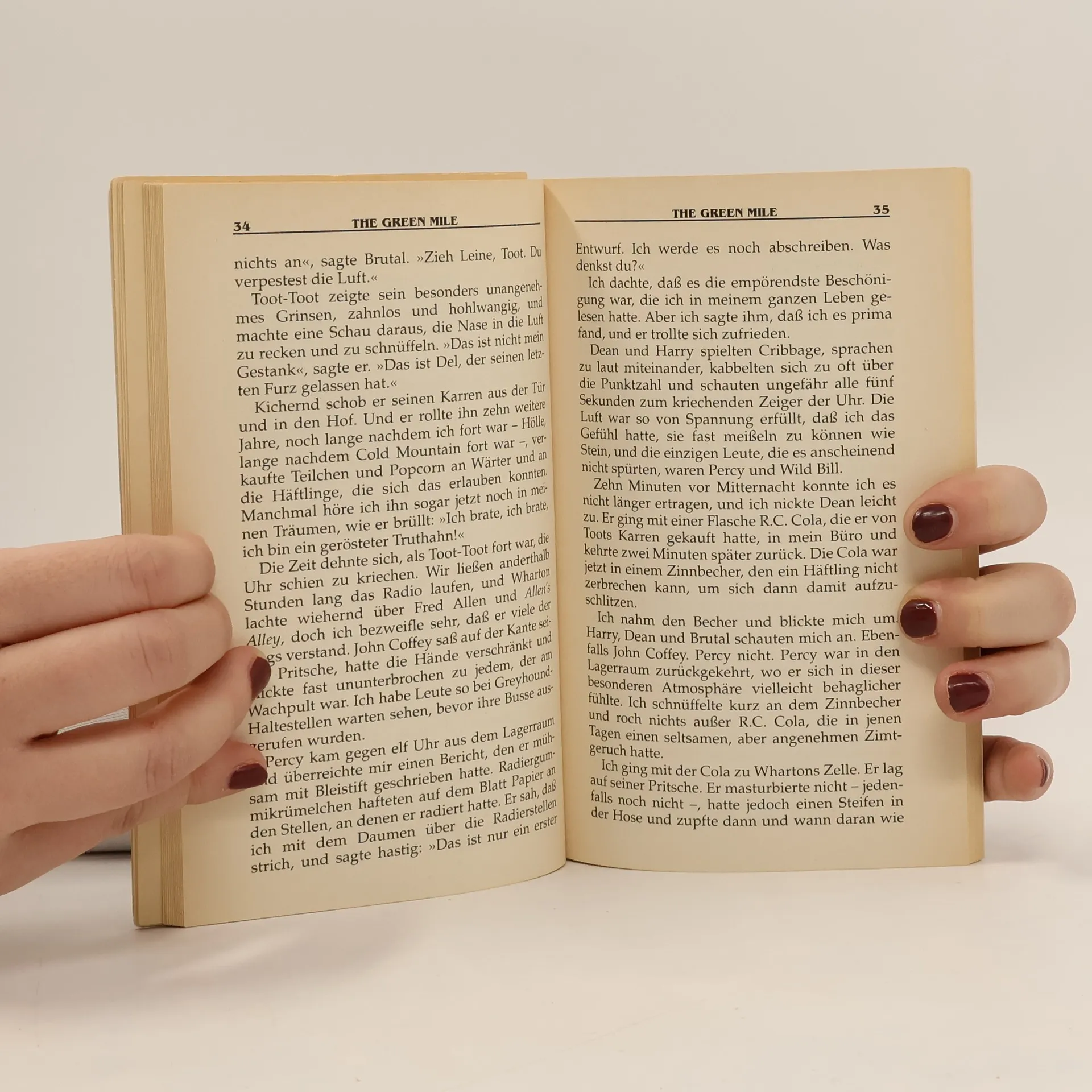 Paul Edgecombe, der Aufseher im todesblock, setzt alles dran, sich Gewißheit über John Coffey zu verschaffen. Er hält ihn für unschuldig.....