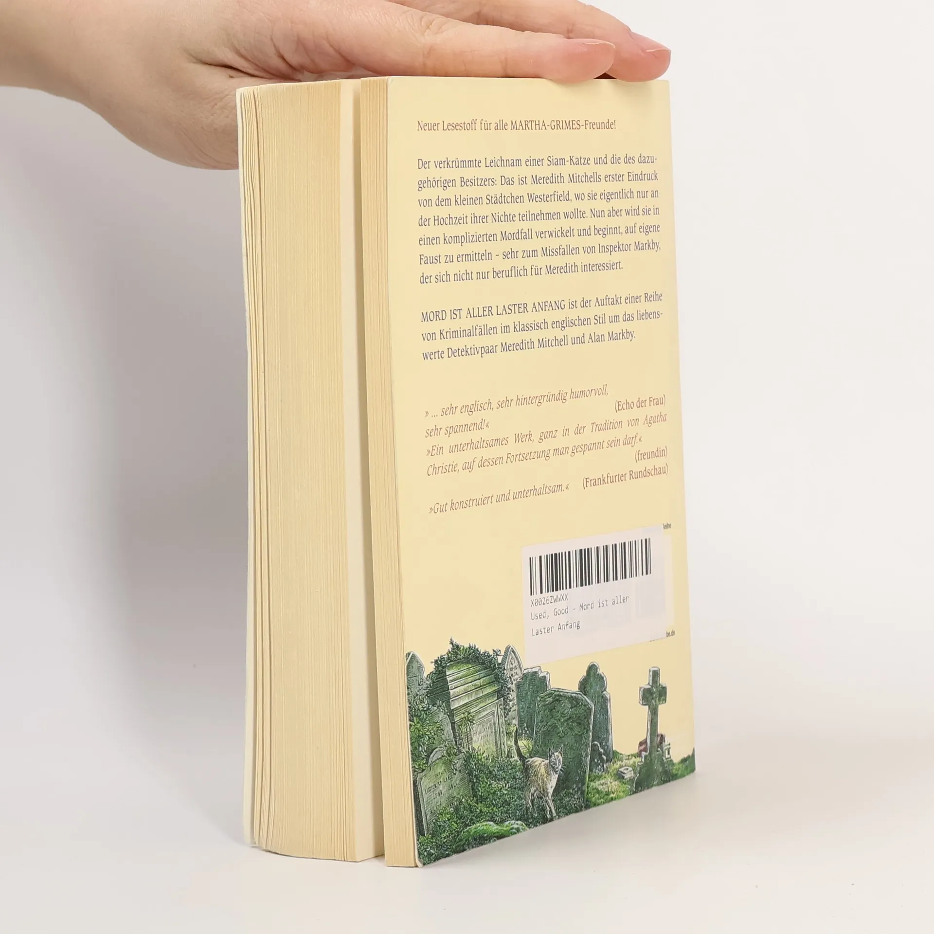 Mitchell Markbys 1. FallDer verkrümmte Leichnam einer Siam-Katze und die des dazugehörigen Besitzers: Das ist Meredith Mitchells erster Eindruck von dem kleinen Städtchen Westerfield, wo sie eigentlich nur an der Hochzeit ihrer Nichte teilnehmen wollte. Nun aber wird sie in einen komplizierten Mordfall verwickelt und beginnt auf eigene Faust zu ermitteln - sehr zum Missfallen von Inspektor Markby, der sich nicht nur beruflich für Meredith interessiert. Mord ist aller Laster Anfang ist der Auftakt einer Reihe von Kriminalromanen im klassisch englischen Stil um das liebenswerte Detektivpaar Meredith Mitchell und Alan Markby.