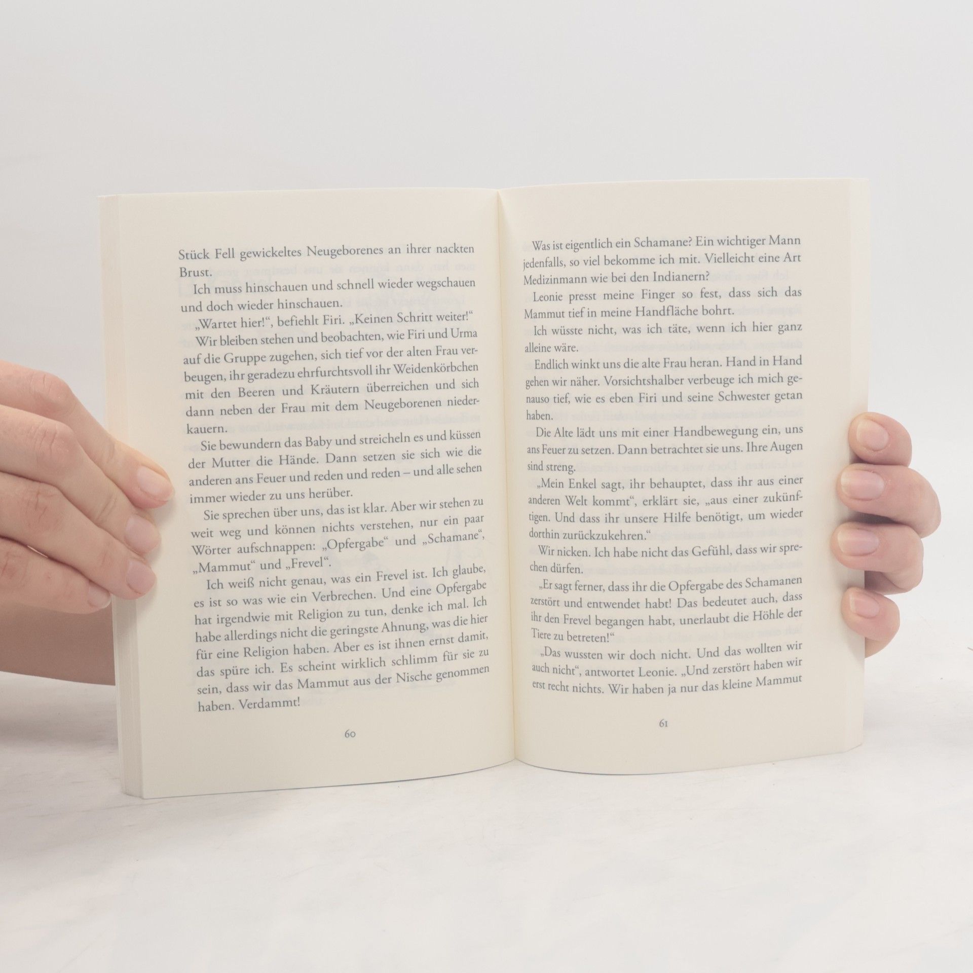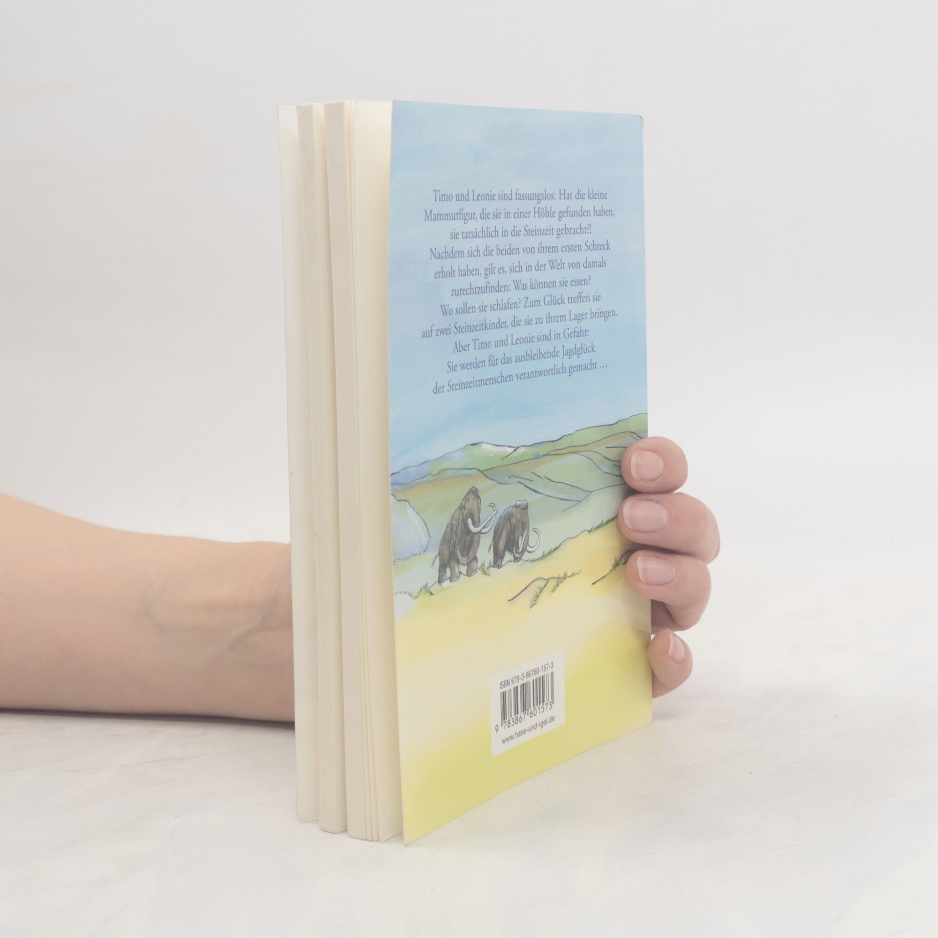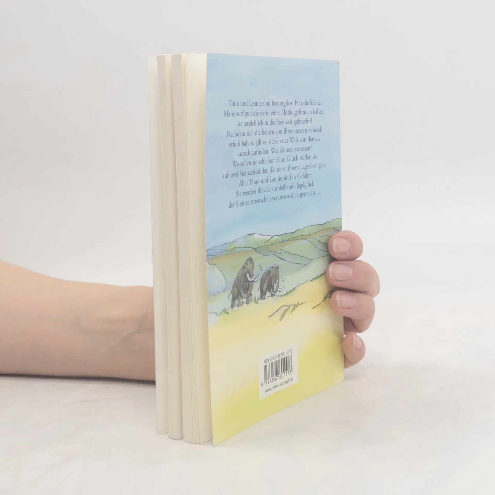 Sommerferien – aber für Timo keine tollen Aussichten. Er soll mit seinem Vater, dessen Freundin und deren Tochter Leonie gemeinsam in den Urlaub fahren. Da geschieht etwas Unglaubliches: Timo und Leonie landen plötzlich in der Jüngeren Altsteinzeit! Liegt das an der kleinen Mammutfigur, die sie in einer Höhle auf der Schwäbischen Alb gefunden haben? Und wie kommen sie wieder in die Gegenwart? Zunächst müssen sie sich in einer fremden Welt zurechtfinden: Wie macht man Feuer ohne Feuerzeug? Was kann man essen? Wo sind andere Menschen? Zum Glück treffen sie auf zwei Kinder, die sie zu ihrem Lager bringen. Aber Timo und Leonie sind in Gefahr: Sie werden für das ausbleibende Jagdglück der Steinzeitmenschen verantwortlich gemacht … Die Geschichte wird aus Timos Perspektive erzählt. Er und Leonie lernen nicht nur viel über die Steinzeit, sondern auch über sich selbst. Mit ihren Interessen, Sorgen, Stärken und Schwächen bieten sie für Jungen und Mädchen gleichermaßen Identifikationsmöglichkeiten. Ihre Begegnung mit den Steinzeitkindern lässt eine längst vergangene Zeit lebendig werden.