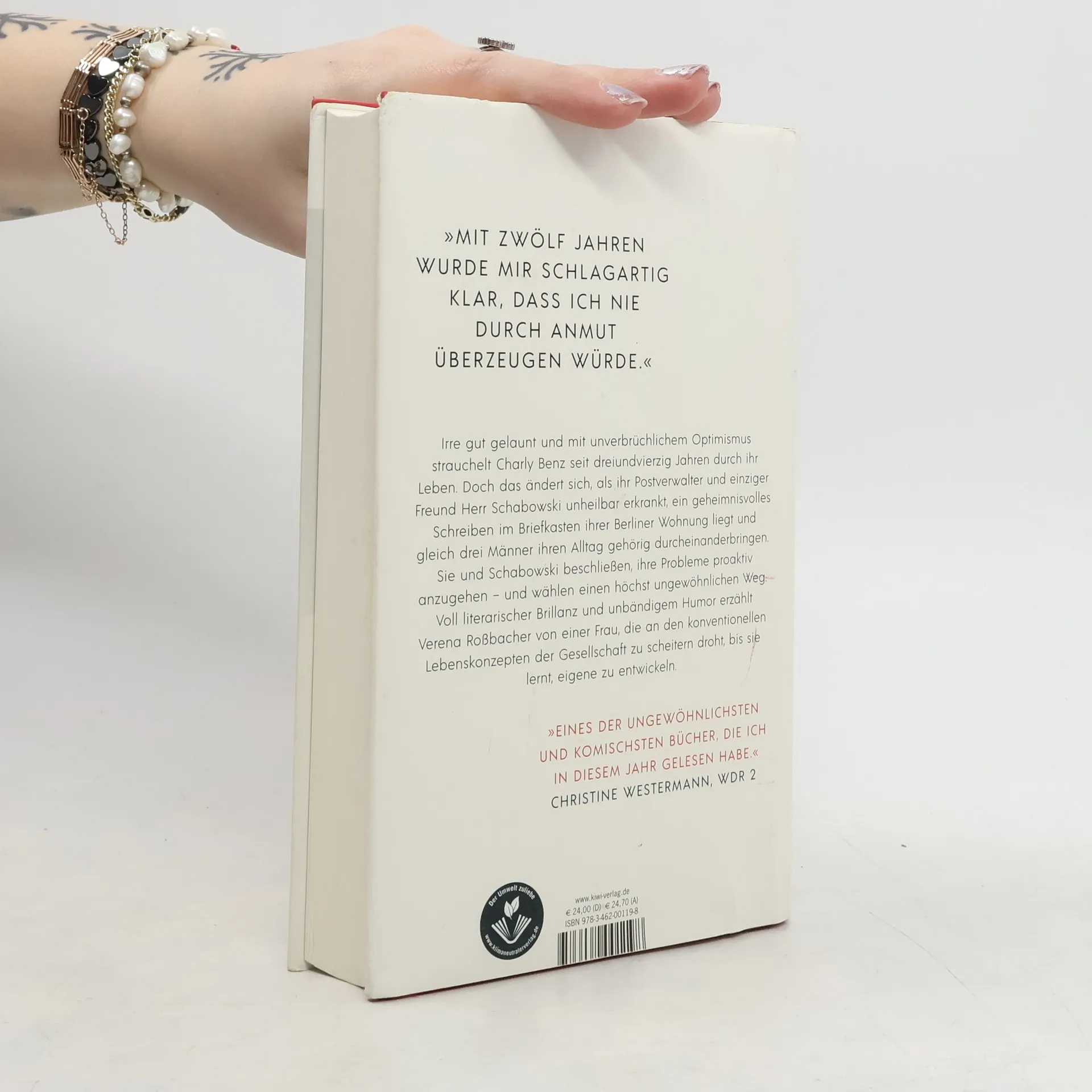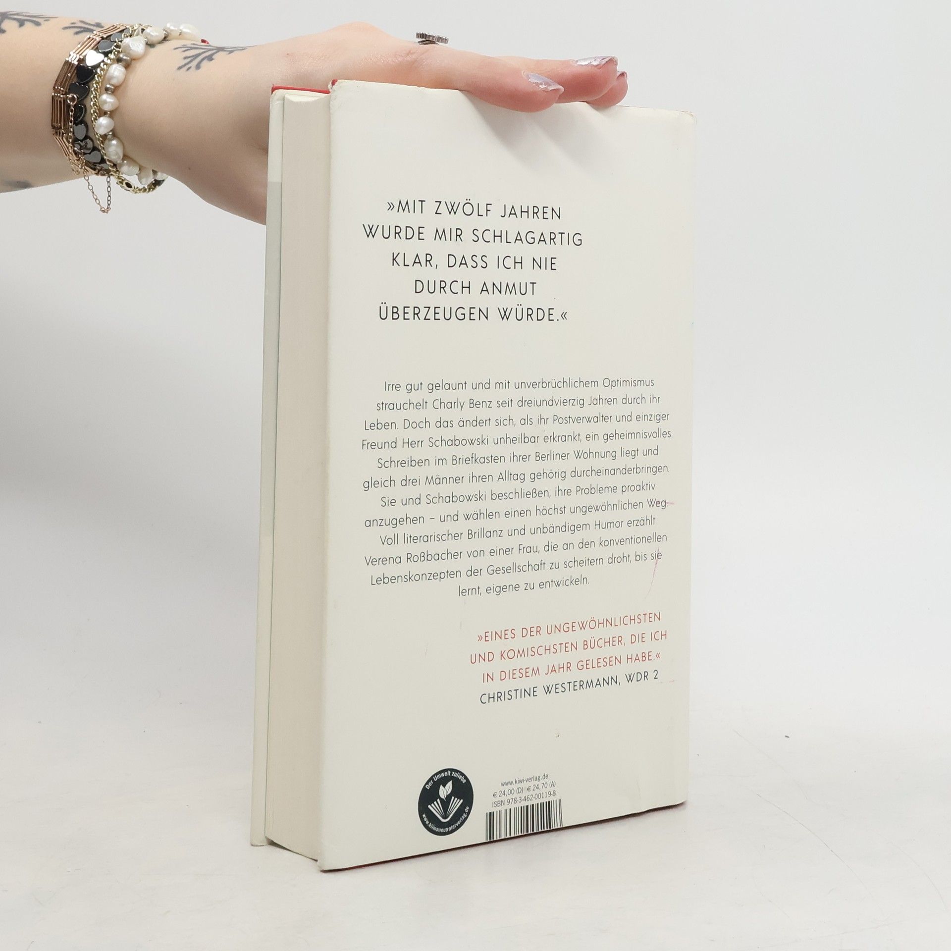 »Mit zwölf Jahren wurde mir schlagartig klar, dass ich nie durch Anmut überzeugen würde.« Charly Benz. Wie gestaltet man sein Leben, wenn man zwei linke Hände, eine demolierte Seele und jede Menge Probleme hat? Eine hinreißende Tiefstaplerin, der man nicht so ganz trauen kann, führt uns durch den neuen Roman von Verena Roßbacher. Mit unverbrüchlichem Optimismus und irre gut gelaunt strauchelt Charly Benz seit 43 Jahren durch ihr Leben. Sie arbeitet im Marketing einer Berliner Foodcompany, ernährt sich von angebrannten Croissants und bespricht ihre Beziehungsprobleme – die darin bestehen, dass sie keine Beziehung hat – mit ihrem einzigen Freund: Herr Schabowski, ein sechzigjähriger Mann, der ihre Post und Ängste sortiert. Doch als dieser eine tödliche Diagnose erhält, ihr erster Versuch einer Systemischen Familienaufstellung in einem Debakel endet und plötzlich gleich drei Männer ihr Leben gehörig durcheinanderbringen, verlässt Charly allumfassend der Mut. Den sollte sie schleunigst wiederfinden, sie ist nämlich schwanger. Sie und Schabowski beschließen, ihre Probleme proaktiv anzugehen: Sie flüchten. Und zwar nach Bad Gastein, ein ehemals mondäner Kurort im Südwesten Österreichs. In einem leerstehenden Hotel der Jahrhundertwende, das einst Charlys Vater gehörte, stellen sie fest: Man kann sich die Menschen, mit denen man verwandt ist, nicht aussuchen – seine Familie aber schon.