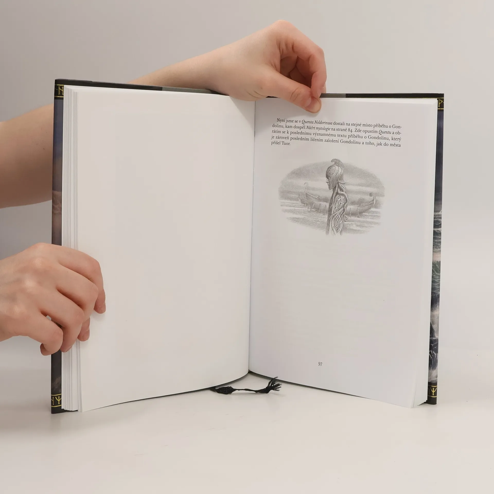 Čtenáři Hobita a Pána prstenů vědí, že J. R. R. Tolkien zasadil tyto příběhy do propracovaného světa, jehož kořeny sahají do mnohem hlubší minulosti. Některé příběhy z dávnověku jeho světa známe zdíky úsilí Christophera Tolkiena, který otcovy příběhy rekonstruuje z rukopisných verzí. Po Silmarillionu, Nedokončených příbězích a Húrinových dětech tak nyní přichází Pád Gondolinu, pojedávající o boji dvou nesmiřitelných mocností: Morgotha, který je vtělením zla, a Ulma, Pána vod, který je druhým nejmocnějším z božských Valar. Morgoth usiluje o zničení města Gondolin, jež vystavěli Noldor, elfové, kteří se vzepřeli bohům a opustili bájný Valinor. Jeho úhlavním nepřítelem je Turgon, vládce Gondolinu, ukrytého před Morghothem mocí kouzel. Ulmo své záměry prosazuje skrze Tuora, kterého dovede do Gondolinu, kde Tuor dosáhne výnamného postavení, ožení se s Turgonovou dcerou a zplodí s ní syna Eärendila. Když se v Gondolinu najde zrádce a Morgoth město najde a zničí, Tuorovi i s rodinou se podaří uprchnout; jeho potomkové pak účinkují v pozdějších obdobích tolkienovské mytologie - například jeho vnuk Elrond, kterého známe z bojů o Prsten.