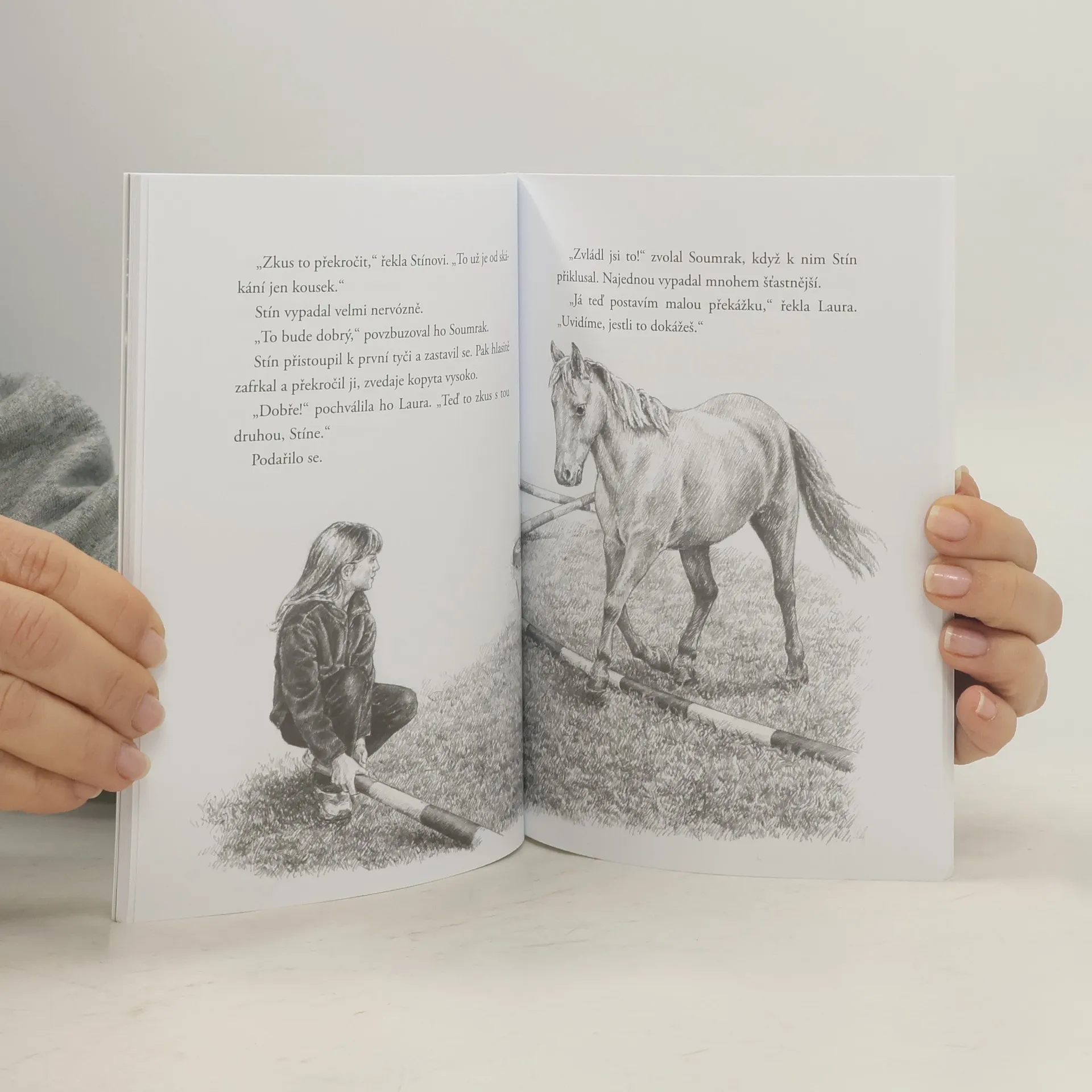 Jen co Laura zašeptá kouzelná slova, její poník Soumrak se promění v jednorožce. Laura to však nesmí nikomu říct, jinak by se Soumrak dostal do velkého nebezpečí. Když se Laura dozví, že poník její kamarádky Mel nemůže skákat, protože má strach, chce jim pomoci. Použijí Soumrakovo kouzlo, aby si Stín začal věřit a svůj strach překonal. Jednou v noci zastihne Mel se Stínem silná bouře a octnou se v nebezpečí. Bude Stín natolik odvážný, aby je oba zachránil?