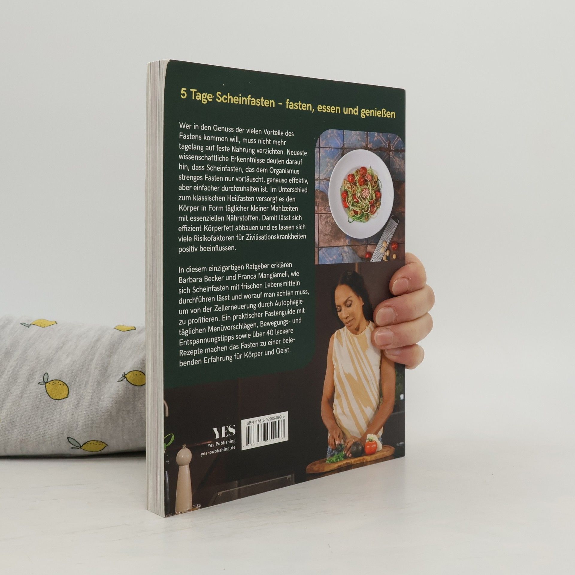 Fasten ist eine uralte Kulturtechnik, deren positive Wirkung auf unsere Gesundheit unbestritten ist. Klassisches Flüssigfasten ist im Alltag aber schwer durchzuhalten. Gemäß neuesten Forschungen des Altersforschers Prof. Dr. Valter Longo ist es gar nicht nötig, tagelang auf feste Nahrung zu verzichten, um in den Genuss der vielen Vorteile des Fastens zu kommen. Seine wissenschaftlichen Erkenntnisse lassen vermuten, dass sogenanntes Scheinfasten (Fasting Mimicking Diet), das dem Organismus strenges Fasten nur vortäuscht, genauso effektiv, aber einfacher durchzuhalten ist. Im Unterschied zum strengen Fasten versorgt es den Körper in Form täglicher kleiner Mahlzeiten mit essenziellen Nährstoffen. Mit Scheinfasten lässt sich effizient Körperfett abbauen und es lassen sich viele Risikofaktoren für Zivilisationskrankheiten positiv beeinflussen. So können Entzündungen vermindert, das Tumorrisiko gesenkt, die Hirnfunktion verbessert, der Blutzucker und Blutdruck normalisiert sowie Cholesterin und Triglyceride gesenkt werden. In diesem einzigartigen Ratgeber erklären Fitnessikone Barbara Becker und Ernährungswissenschaftlerin Franca Mangiameli, wie sich Scheinfasten mit frischen Lebensmitteln durchführen lässt und worauf man achten muss, um von der Zellerneuerung durch Autophagie zu profitieren.