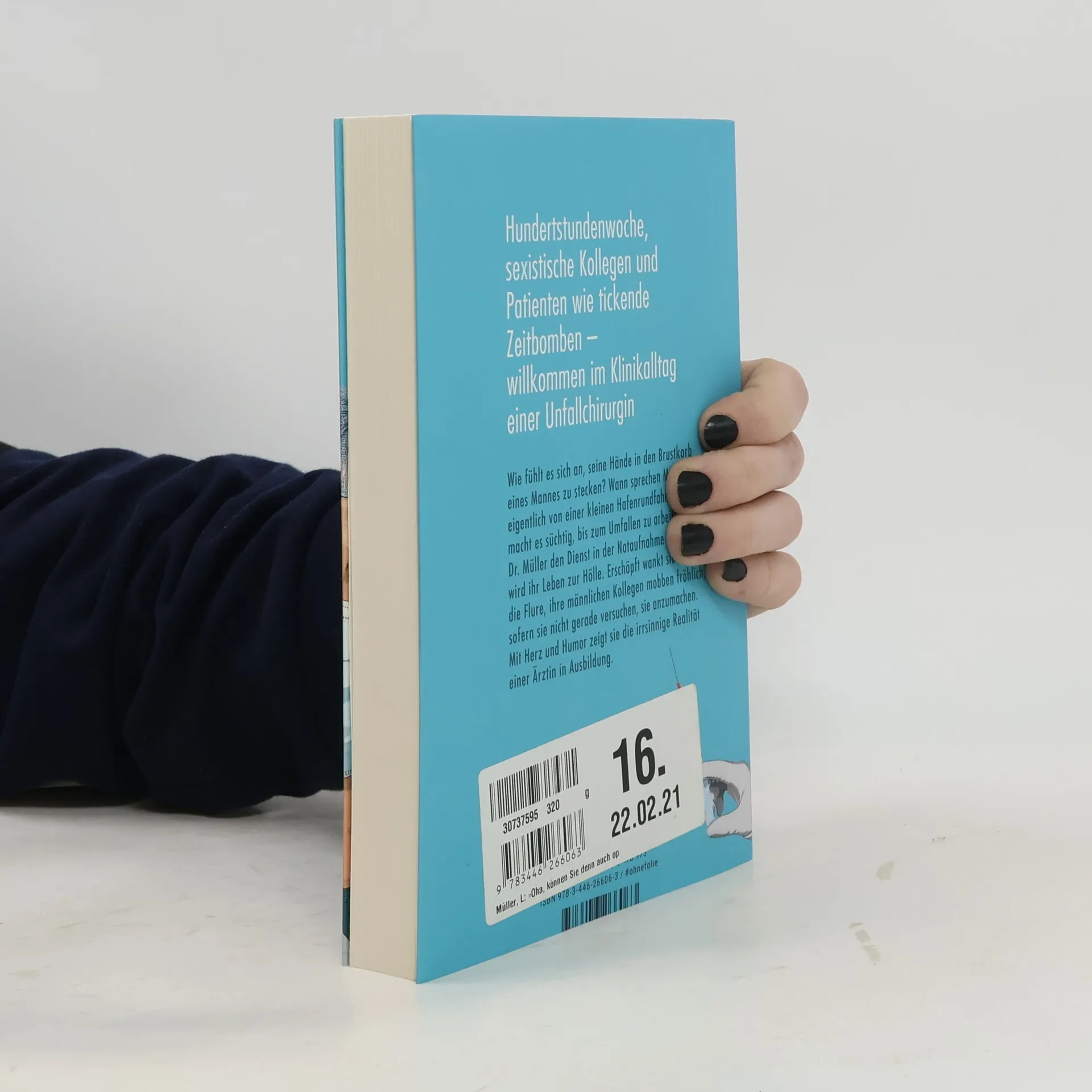 Hundertstundenwoche, sexistische Chefs aus der Hölle und Patienten wie tickende Zeitbomben – willkommen im Klinikalltag einer Unfallchirurgin Wie fühlt es sich an, seine Hände in den Brustkorb eines Mannes zu stecken? Wann sprechen Mediziner eigentlich von einer kleinen Hafenrundfahrt? Warum macht es süchtig, bis zum Umfallen zu arbeiten? Als Dr. Müller den Dienst in der Notaufnahme antritt, wird ihr Leben zur Hölle. Erschöpft wankt sie durch die Flure zwischen abgetrennten Extremitäten, Körperflüssigkeiten und Beschimpfungen. Ihre männlichen Kollegen mobben fröhlich, sofern sie nicht gerade versuchen, sie anzumachen. Mit Herz und Humor zeigt sie die irrsinnige Realität einer Ärztin in Ausbildung. „Eines habe ich gelernt als Ärztin im Klinikalltag: Knochen, Kinder und Beziehungen zerbrechen unter zu viel Druck.“