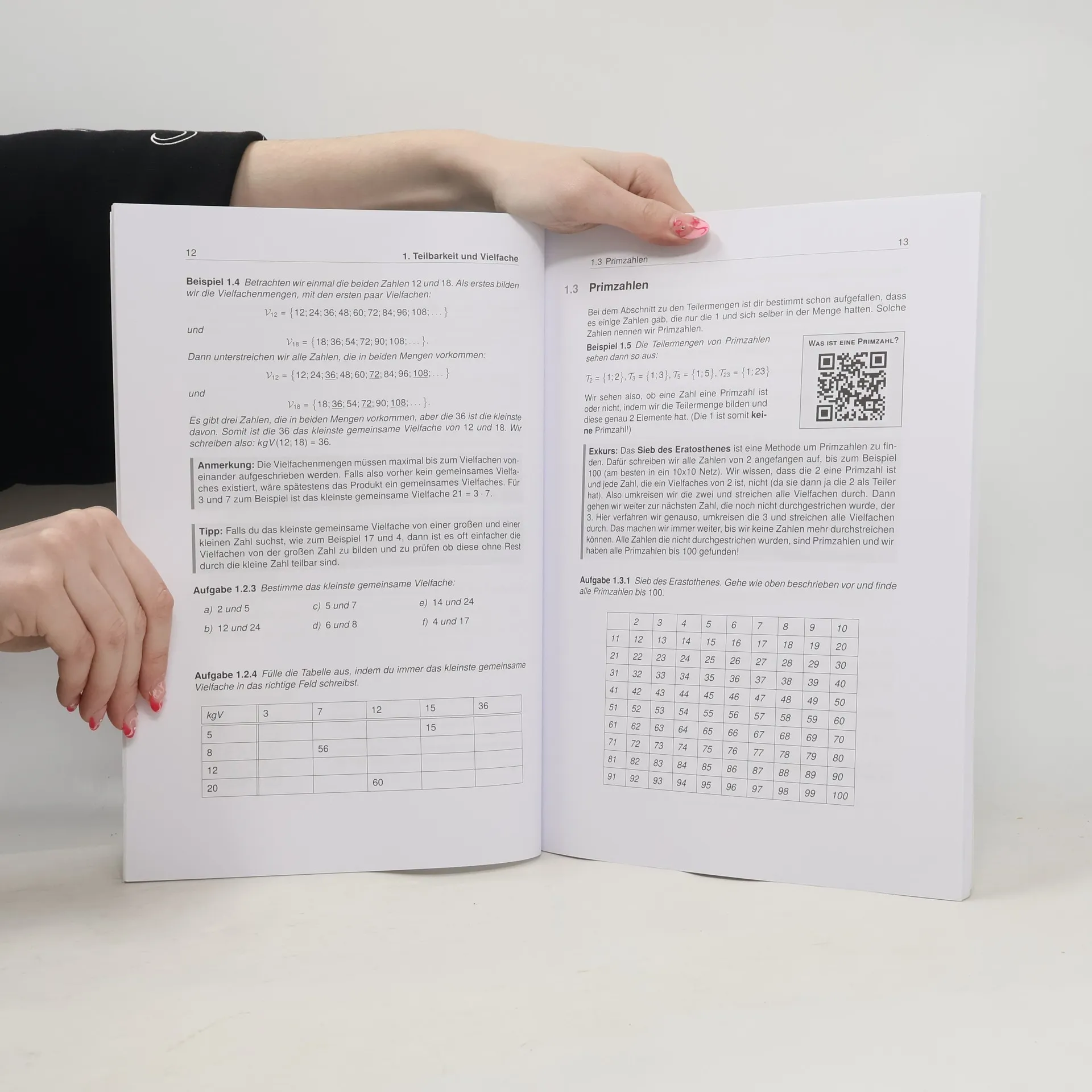 Unser Lernheft hilft dir mit Lernvideos von Lehrer Schmidt, auch in Zeiten von Home-Schooling, nicht den Überblick zu verlieren! 96 Seiten anschauliche Erklärungen 54 Lernvideos von Lehrer Schmidt 63 Aufgaben inkl. Lösungen In diesem Lernheft für die Sekundarstufe I findest du Erklärungen, Beispiele, Aufgaben und Lösungen zu allen relevanten Themen der 6. Klasse für Gymnasien, Gesamt-, Haupt- und Realschulen. Vermeintlich komplizierte Zusammenhänge sind in einer für dich vollkommen verständlichen Sprache dargestellt. Außerdem findest du zu den Themen alle Formeln, Skizzen und was sonst noch notwendig ist, um den Sachverhalt zu verstehen. Als ergänzendes Lernmaterial stehen dir dank der QR-Codes im Heft themenbasierte Erklärvideos von Lehrer Schmidt sofort zur Verfügung. Scanne hierzu mit deinem Smartphone oder Tablet den QR-Code ab und sieh dir ein auf dein Kapitel zugeschnittenes Video an. Auf diese Weise kannst du dich optimal auf mathematische Inhalte vorbereiten und wichtige Themen wiederholen. Inhaltsverzeichnis Teilbarkeit und Vielfache Brüche Dezimalzahlen Dezimalzahlen und Größen Winkel und Kreise Symmetrie und Abbildungen Prozente und Zinsen Daten und Zufall Lösungen