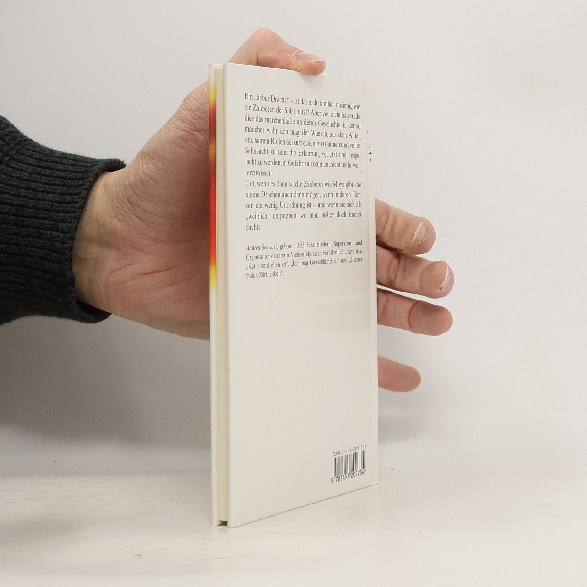 Ein lieber Drache - ist das nicht ähnlich unsinnig wie ein Zauberer, der Salat putzt? Aber vielleicht ist gerade dies das märchenhafte an dieser Geschichte, in der so manches wahr sein mag: der Wunsch, aus dem Alltag und seinen Rollen auszubrechen, zu träumen und voller Sehnsucht zu sein; die Erfahrung verletzt und ausgelacht zu werden, in Gefahr zu kommen, nicht mehr weiterzuwissen. Gut, wenn es dann solche Zauberer wie Moya gibt, die kleine Drachen auch dann mögen, wenn in deren Herzen ein wenig Unordung ist - und wenn sie sich als weiblich entpuppen, wo man bisher doch immer dachte.