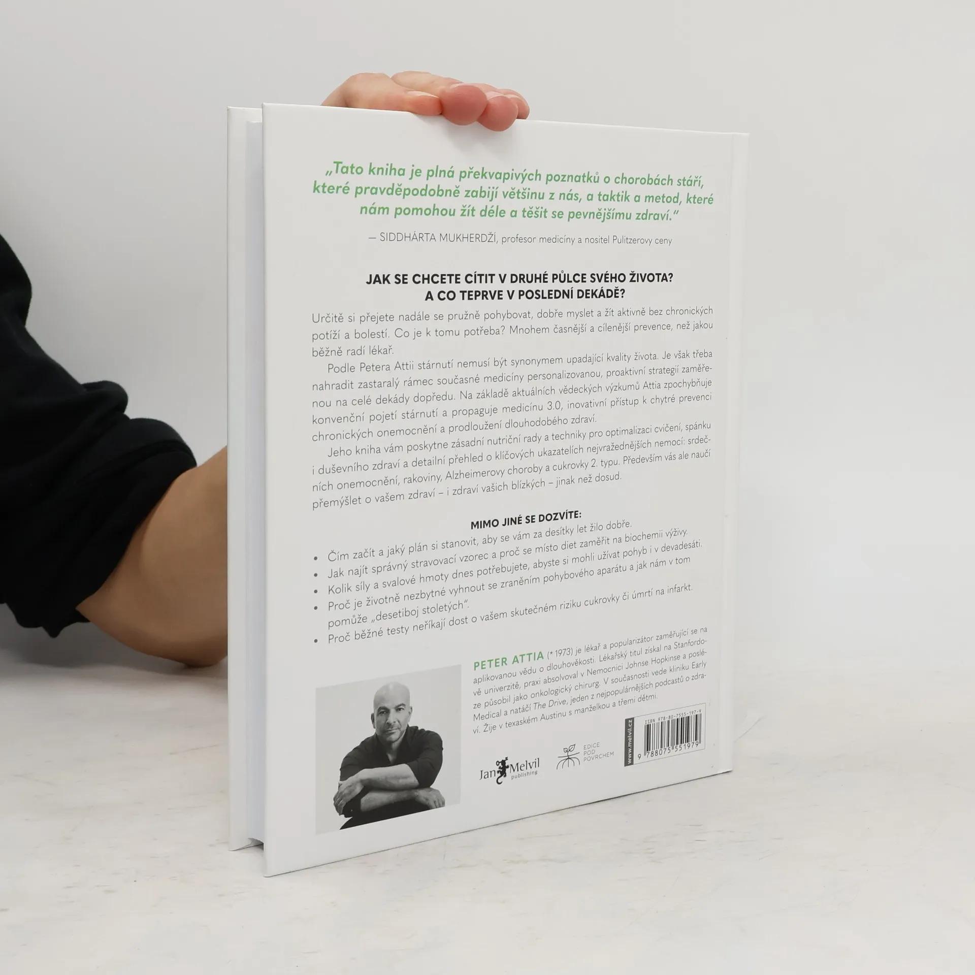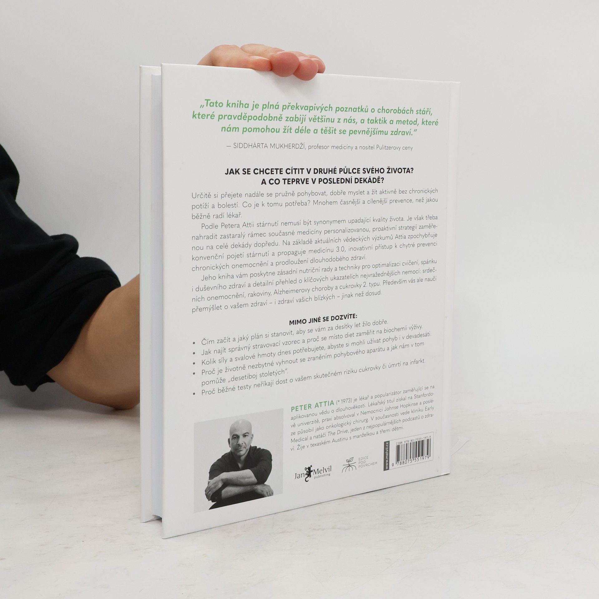 Určitě si přejete nadále se pružně pohybovat, dobře myslet a žít aktivně bez chronických potíží a bolestí. Co je k tomu třeba? Mnohem časnější a cílenější prevence, než jakou běžně radí lékař. Peter Attia věří, že zastaralý rámec současné medicíny musíme nahradit personalizovanou, proaktivní strategií zaměřenou na celé dekády dopředu. Na základě aktuálních vědeckých výzkumů Attia zpochybňuje konvenční pojetí stárnutí a propaguje medicínu 3.0, inovativní přístup k chytré prevenci chronických onemocnění a prodloužení dlouhodobého zdraví. Jeho kniha vám poskytne zásadní nutriční rady a techniky pro optimalizaci cvičení, spánku i duševního zdraví a detailní přehled o klíčových ukazatelích nejvražednějších nemocí: srdečních chorob, rakoviny, Alzheimerovy choroby a cukrovky 2. typu. Především vás ale naučí přemýšlet o vašem zdraví – i zdraví vašich blízkých – jinak než dosud.