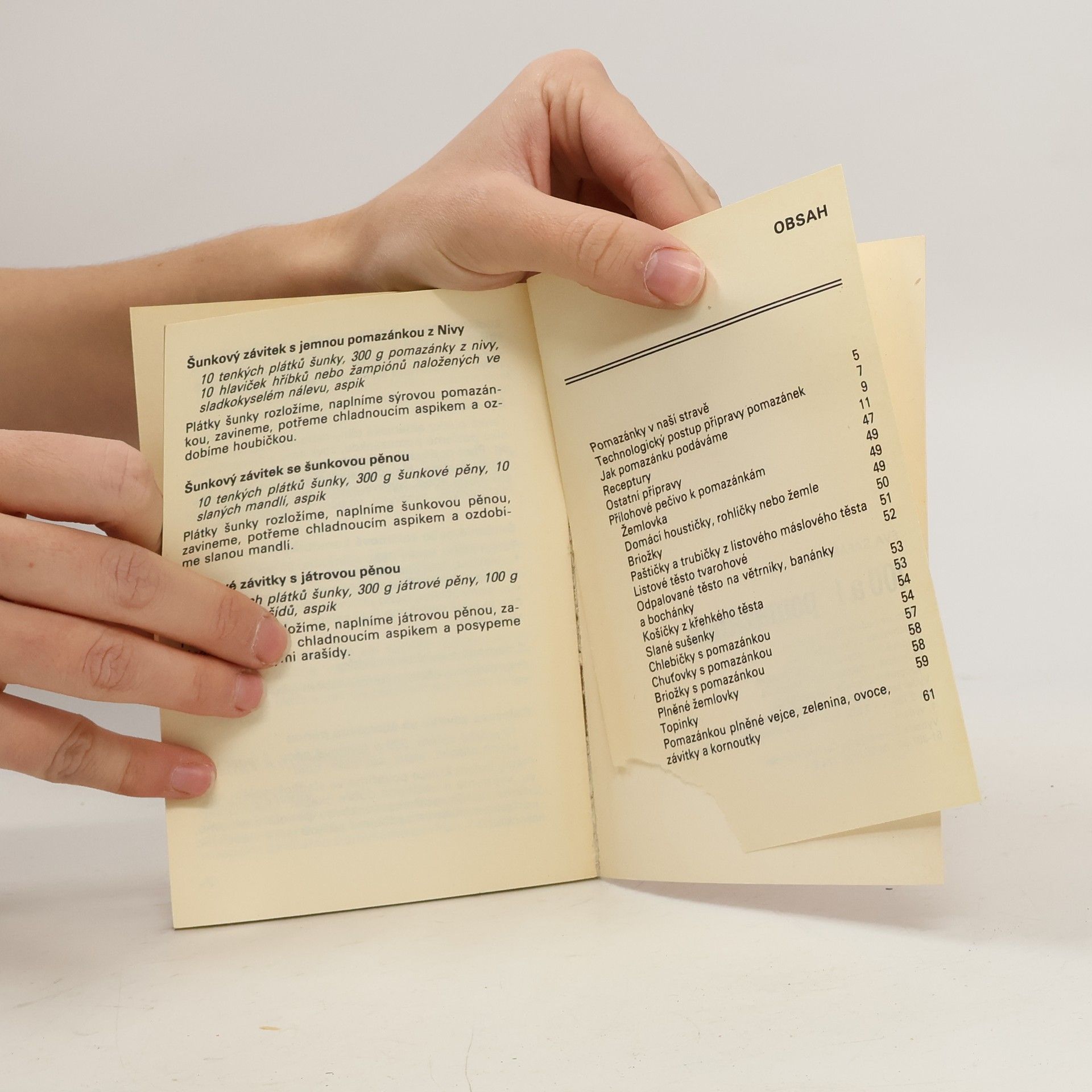 Předpisy na přípravu jednoduchých slaných i sladkých pomazánek doplňuje technologický postup jejich přípravy, receptury na přílohové pečivo k pomazánkám a předpisy na plněná vejce, zeleninu, ovoce, závitky a kornoutky