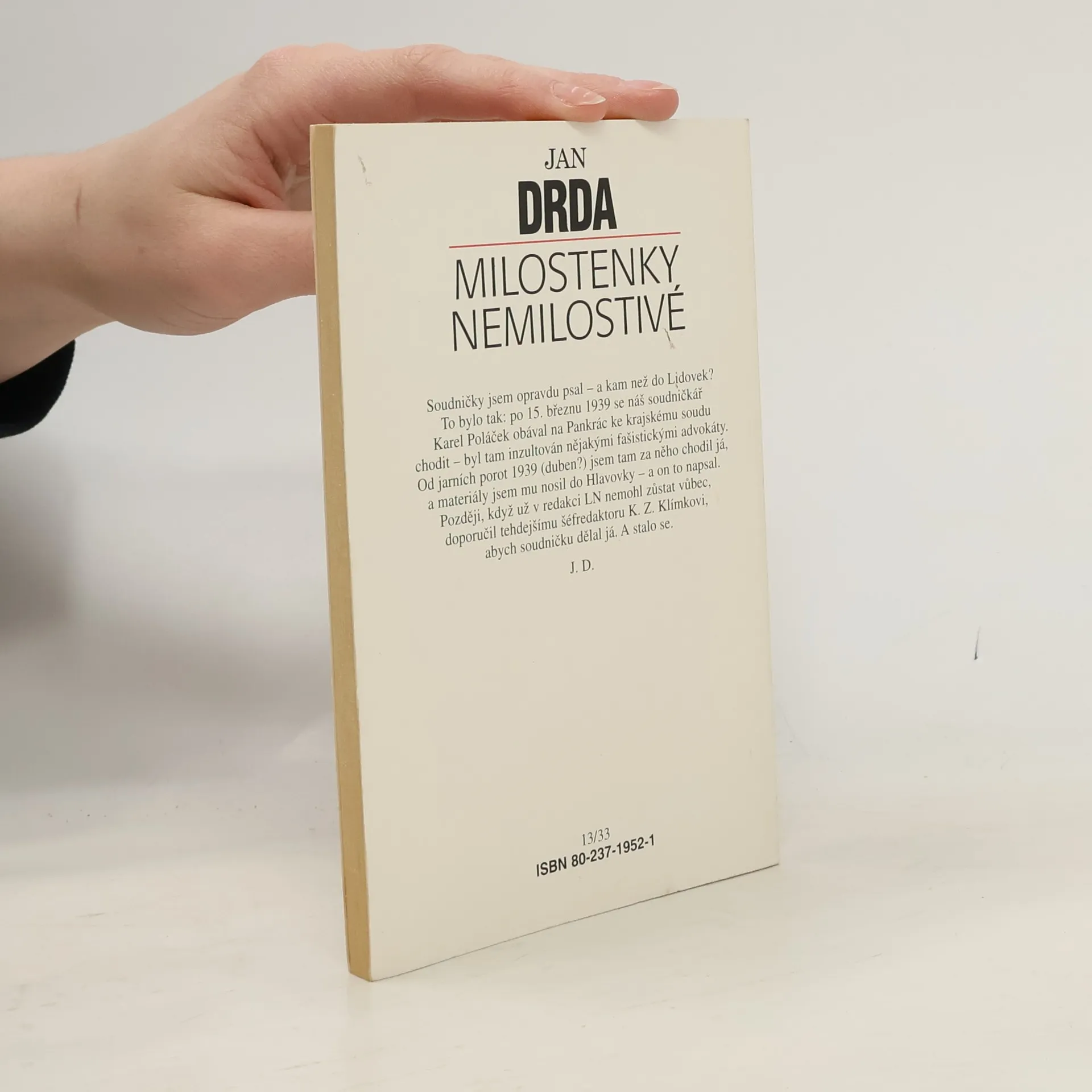 Soudničky 1939 - 1940. Slavnou rubriku soudniček v Lidových novinách převzal na čas Jan Drda po Karlu Poláčkovi- když ten se nejprve obával chodit k soudu, pak už jako žid nesměl zůstat ani v redakci. Z dnešních novin soudničky vymizely- až při přečtení Drdova souboru napadne čtenáře, jaká je to škoda. Drobné vtipné črty, připomínající Čapkovy "kapesní" povídky, jenže ze skutečného života, z jednání konkrétního pražského soudu konkrétního dne. Inu, hříšní lidé z města pražského a jejich osudy, půvabné i nostalgií jiného času, kdy jako by se žilo pomaleji a mírněji, kradlo, mordovalo a podvádělo nějak laskavěji a lidštěji.