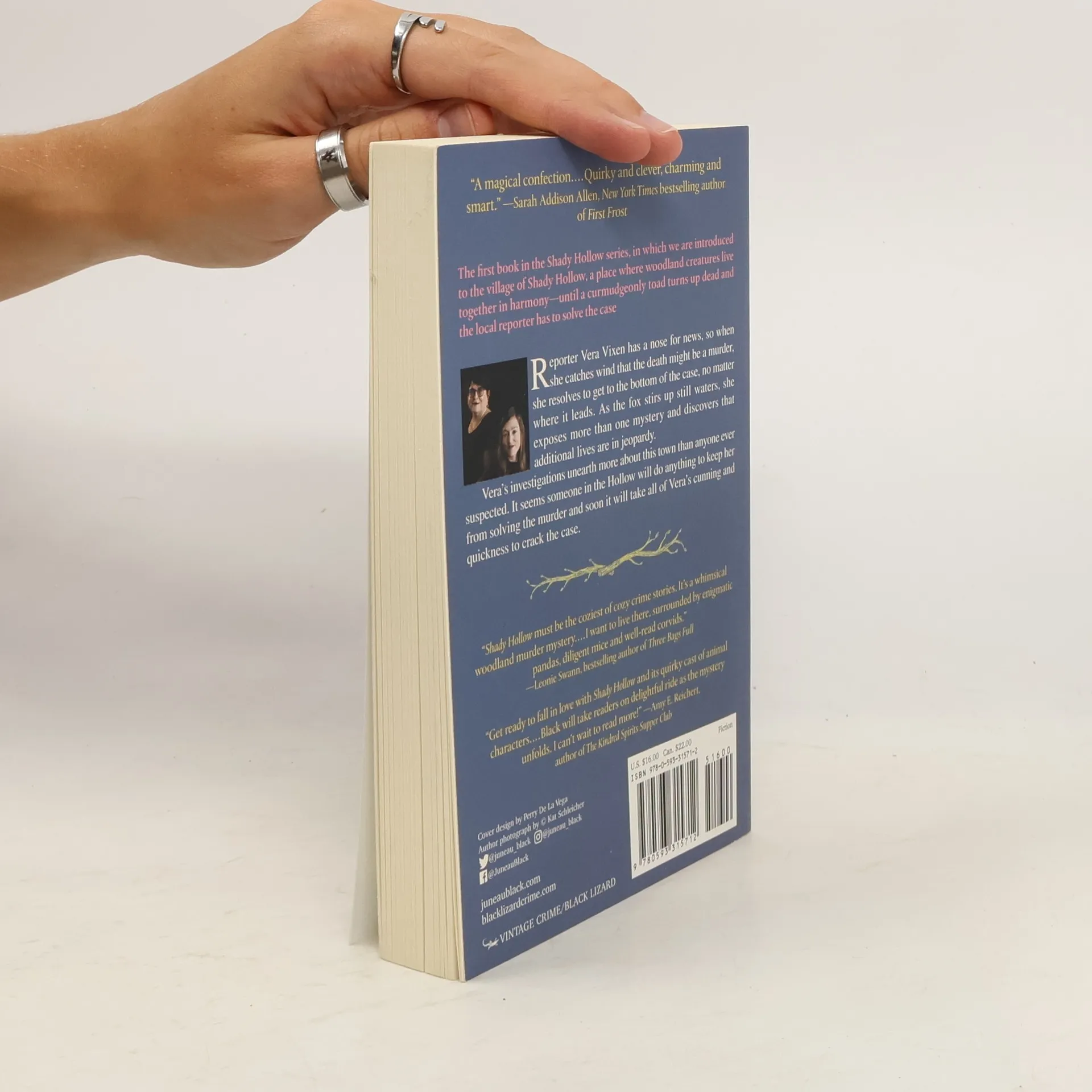 The first book in the Shady Hollow series, in which we are introduced to the village of Shady Hollow, a place where woodland creatures live together in harmony—until a curmudgeonly toad turns up dead and the local reporter has to solve the case. Reporter Vera Vixen is a relative newcomer to Shady Hollow. The fox has a nose for news, so when she catches wind that the death might be a murder, she resolves to get to the bottom of the case, no matter where it leads. As she stirs up still waters, the fox exposes more than one mystery, and discovers that additional lives are in jeopardy. Vera finds more to this town than she ever suspected. It seems someone in the Hollow will do anything to keep her from solving the murder, and soon it will take all of Vera’s cunning and quickness to crack the case. A VINTAGE CRIME/BLACK LIZARD ORIGINAL