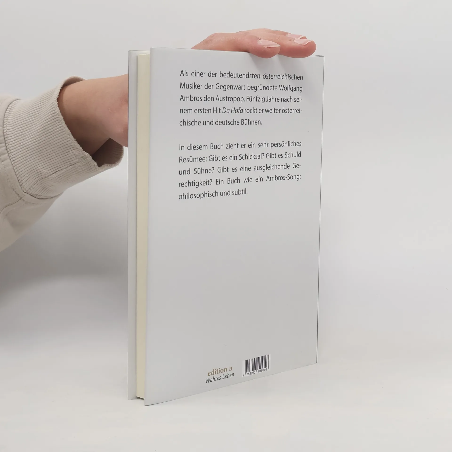 Als einer der bedeutendsten österreichischen Musiker der Gegenwart begründete Wolfgang Ambros den Austropop mit. Fünfzig Jahre nach seinem ersten Hit Da Hofa rockt er weiter österreichische und deutsche Bühnen. In diesem Buch zieht er ein sehr persönliches Zwischenresümee: Gibt es ein Schicksal? Gibt es Schuld und Sühne? Gibt es eine ausgleichende Gerechtigkeit? Ein Buch wie ein Ambros-Song: philosophisch und subtil.
