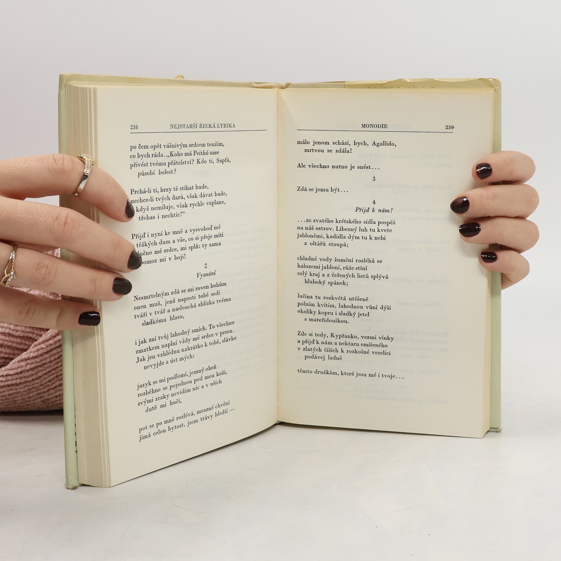 Nejstarší řecká lyrika předkládá čtenáři Antické knihovny reprezentativní výbor poezie (s výjimkou eposu a sborové lyriky) vzniklé v archaickém a klasickém období straé řecké společnosti. Tehdy lyrika zahrnovala širší paletu námětů, než jak je tomu dnes. Čtenář se tu setká s vlastními lyrickými projevy, ale také s projevy útočnými, kritickými, s básněmi k vínu, epigramy aj. Svazek obsahuje nejen poezii básníků, kteří se stali součástí světové kultury – za všechny jmenujme Sapfu a Anakreonta –, ale i těch, kteří měli ohlas jen v antice; z veršů poznáváme jejich dobu, společenské a kulturní prostředí, v němž tvořili. Tak např. první "prokletý" básník Hippónax nám ukazuje pestrou a rozmařilou společnost řecko-lýdskou z Malé Asie, Xenofanés nám odráží zajímavý myšlenkový posun od mytického myšlení k racionálnímu. Do souboru byly pojaty i projevy anonymních autorů, ať už lidové poezie či veršovaných nápisů, které ukazují na široký proud, z něhož vyústil výkvět starořecké poezie. Na tento svazek navazují Obrázky z řeckého života (Antická knihovna č. 48).