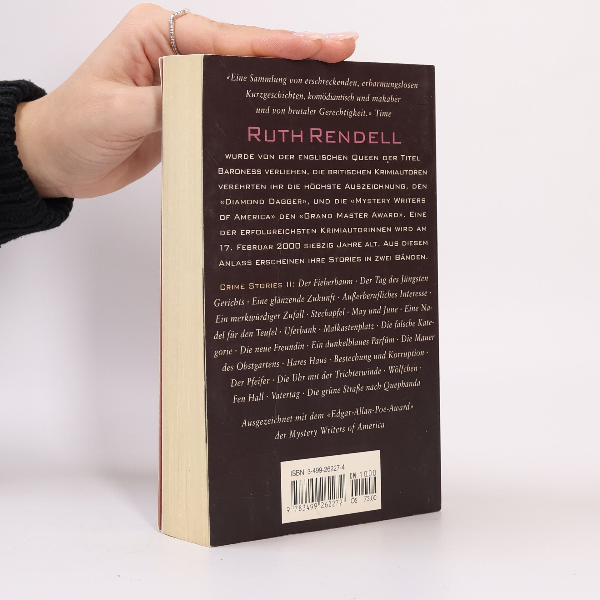 Ruth Rendell wurde 1930 in London geboren, wo sie auch heute lebt. Seit ihrem ersten Buch «Alles Liebe vom Tod», das 1964 erschien, hat sie alle wesentlichen Preise und Auszeichnungen erhalten: mehrfach den Silver und Gold Dagger der englischen Krimiautoren, mehrfach den Edgar der Mystery Writers of America, den Diamond Dagger für ihr Lebenswerk, den Grand Masters Award, den Literary Award der Sunday Times. Die englische Königin erhob sie 1997 aufgrund ihrer Verdienste um die Literatur in den Adelsstand und verlieh ihr den Titel «Baroness». Ruth Rendell schreibt auch unter dem Pseudonym Barbara Vine.