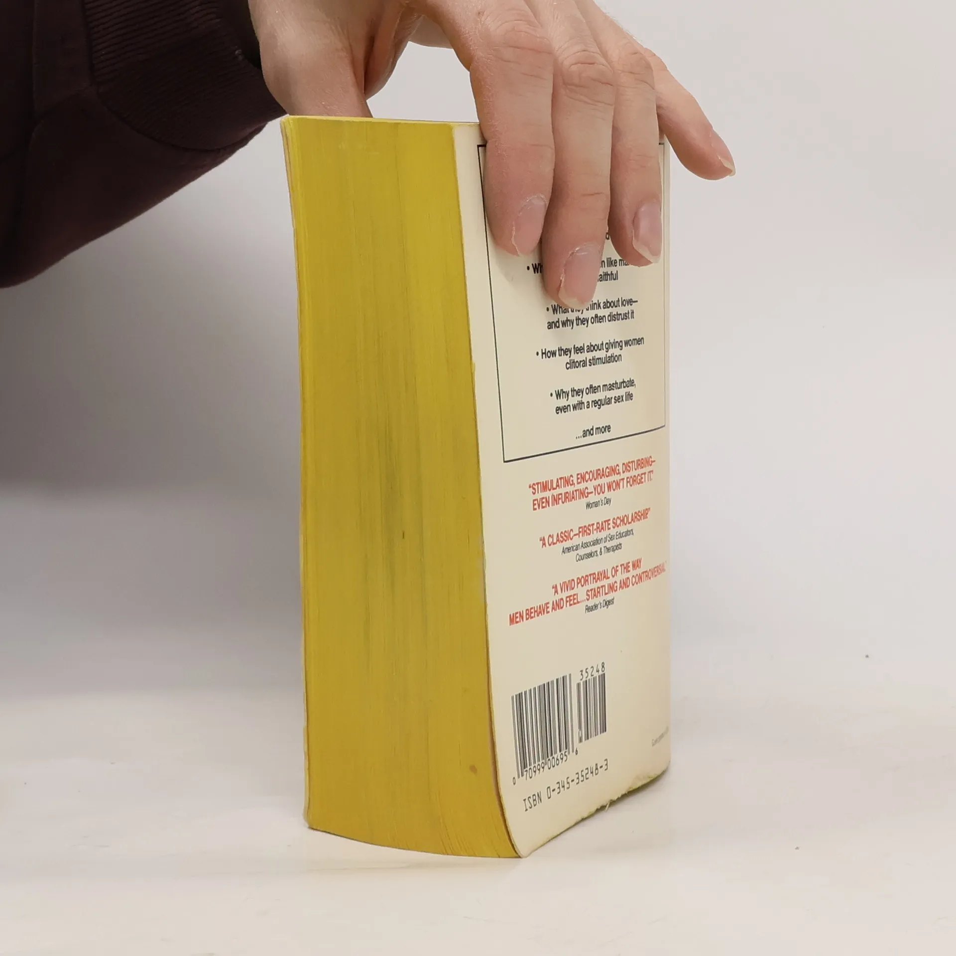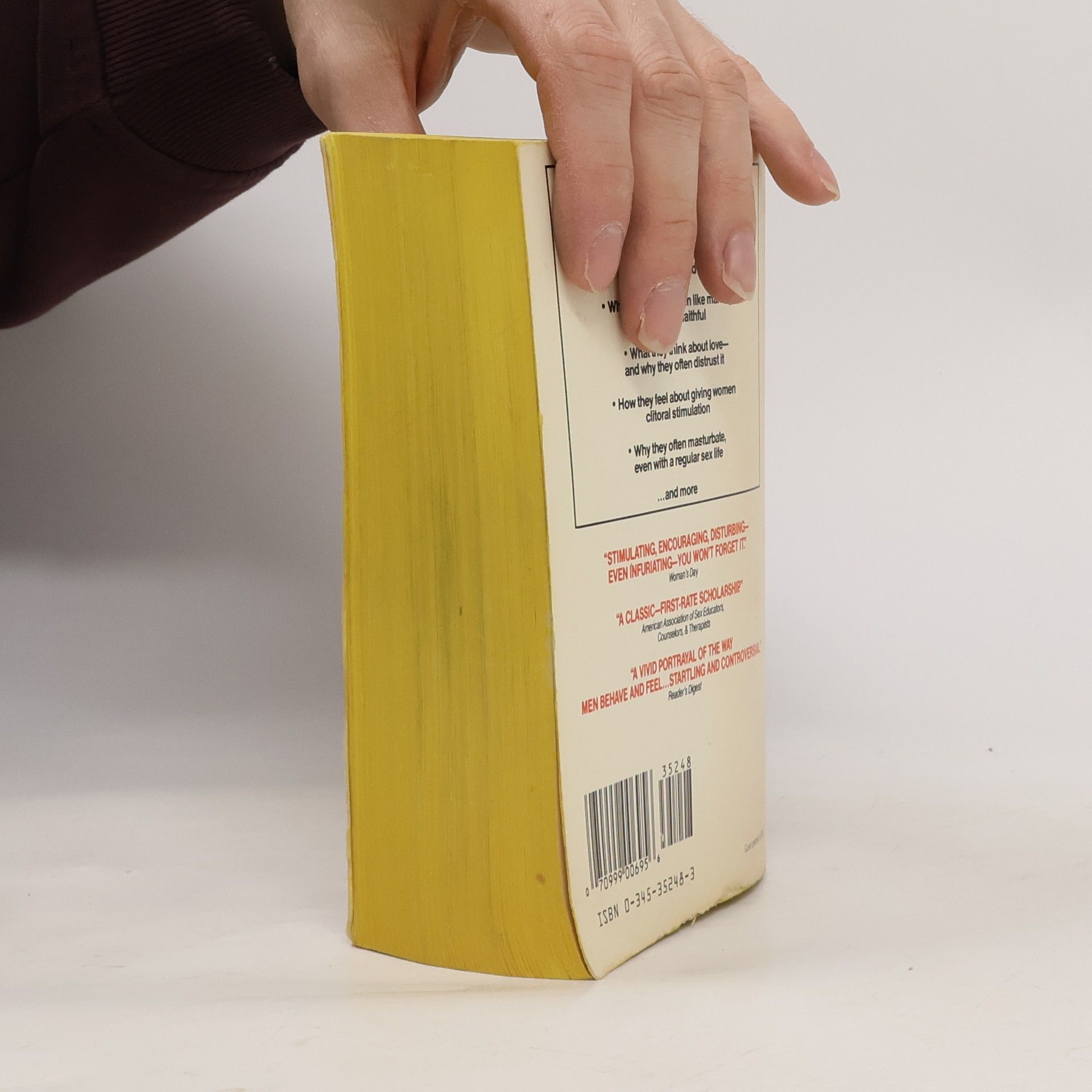 "A riveting document!" NEWSWEEK Over 7,000 men, ages thirteen to ninety-seven, speak out about: What they think of women--as wives, lovers, and friends; why a majority of men like marriage but are not faithful; what they think about love--and why they often distrust it; how they feel about giving women clitoral stimulation; why they often masturbate even with a regular sex life...and more.
