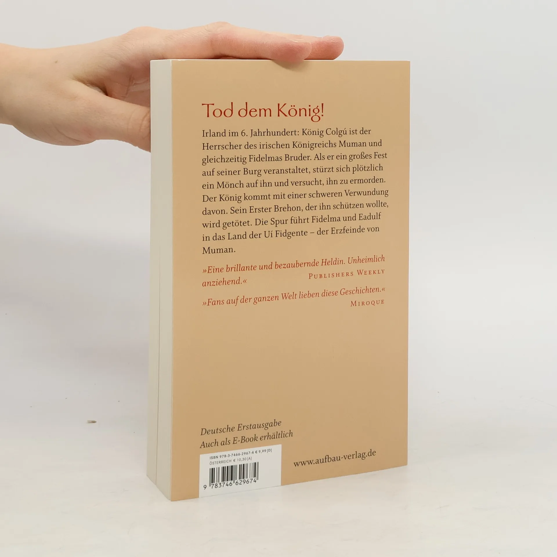 Tod dem König! Es sollte eine großes und schönes Fest werden auf der Burg von Cashel, dem Sitz von König Colgú von Muman. Da stürzt sich ein fremder Mönch auf den Herrscher und will ihn ermorden. Der König wird schwer verletzt. Sein Brehon, der ihn mit seinem Leib schützte, ist auf der Stelle tot. Der Mönch kam aus einem Kloster im Gebiet der Uí Fidgente, der Erzfeinde von Muman. Erst vor vier Jahren haben die Krieger von König Colgú einen Sieg über sie errungen. Fidelma und Eadulf müssen unter Gefahr für Leib und Leben ermitteln. „Eine brillante und bezaubernde Heldin. Unheimlich anziehend.“ Publishers Weekly „Fans auf der ganzen Welt lieben diese Geschichten.“ Miroque