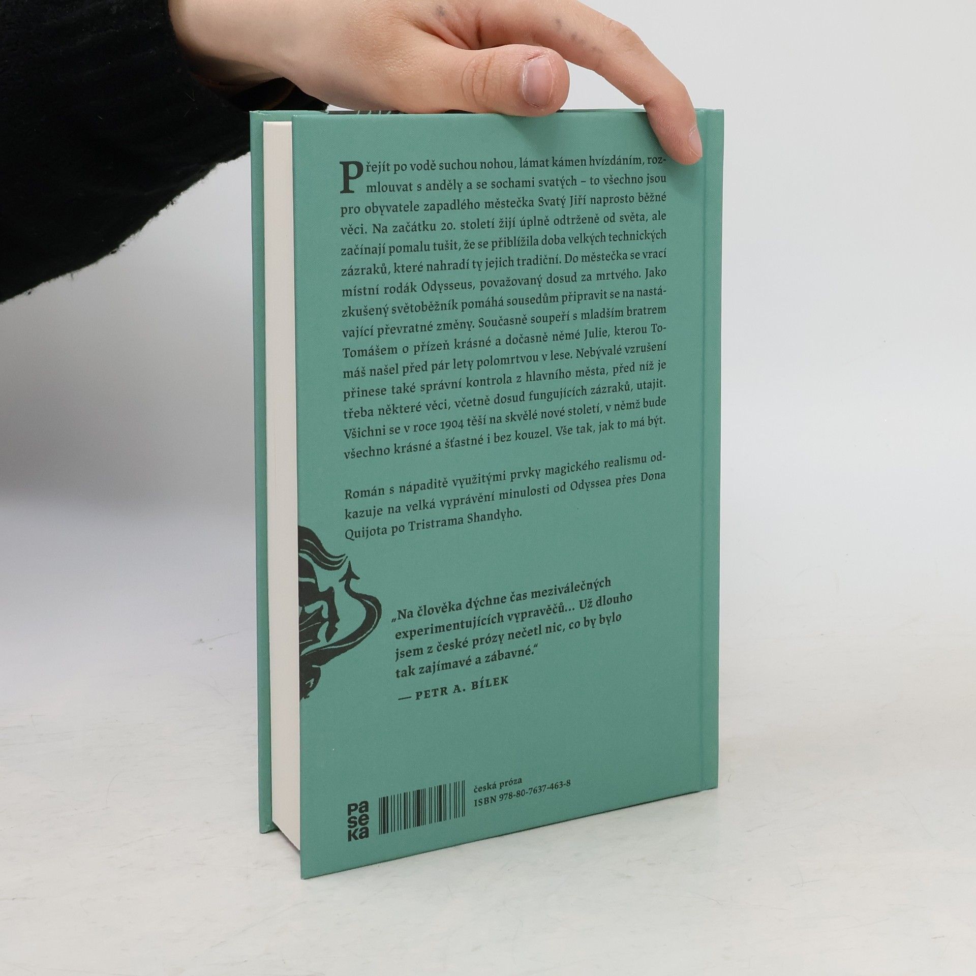 Přejít po vodě suchou nohou, lámat kámen hvízdáním, rozmlouvat s anděly a se sochami svatých – to všechno jsou pro obyvatele zapadlého městečka Svatý Jiří naprosto běžné věci. Na začátku 20. století žijí úplně odtrženě od světa, ale začínají pomalu tušit, že se přiblížila doba velkých technických zázraků, které nahradí ty jejich tradiční. Do městečka se vrací místní rodák Odysseus, považovaný dosud za mrtvého. Jako zkušený světoběžník pomáhá sousedům připravit se na nastávající převratné změny. Současně soupeří s mladším bratrem Tomášem o přízeň krásné a dočasně němé Julie, kterou Tomáš našel před pár lety polomrtvou v lese. Nebývalé vzrušení přinese také správní kontrola z hlavního města, před níž je třeba některé věci, včetně dosud fungujících zázraků, utajit. Všichni se v roce 1904 těší na skvělé nové století, v němž bude všechno krásné a šťastné i bez kouzel. Vše tak, jak to má být. Román s nápaditě využitými prvky magického realismu odkazuje na velká vyprávění minulosti od Odyssea přes Dona Quijota po Tristrama Shandyho.