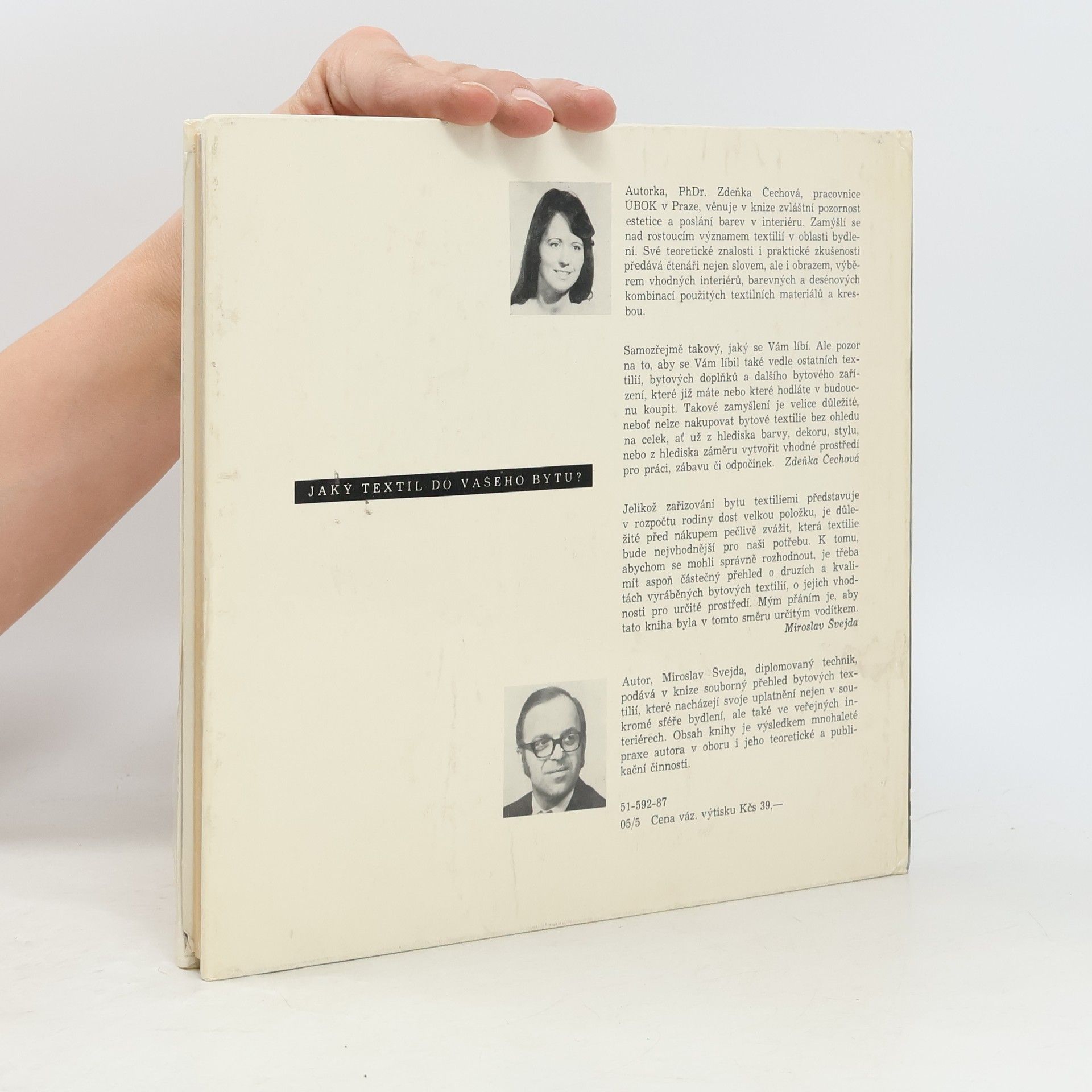 Autorka Zdeňka Čechová věnuje v knize zvláštní pozornost estetice a poslání barev v interiéru. Zamýšlí se nad rostoucím významem textilií v oblasti bydlení. Autor Miroslav Švejda, diplomovaný technik, podává v knize souborný přehled bytových textilií, které nacházejí svoje uplatněnínejen v soukromé sféře bydlení, ale také ve veřejných interiérech.