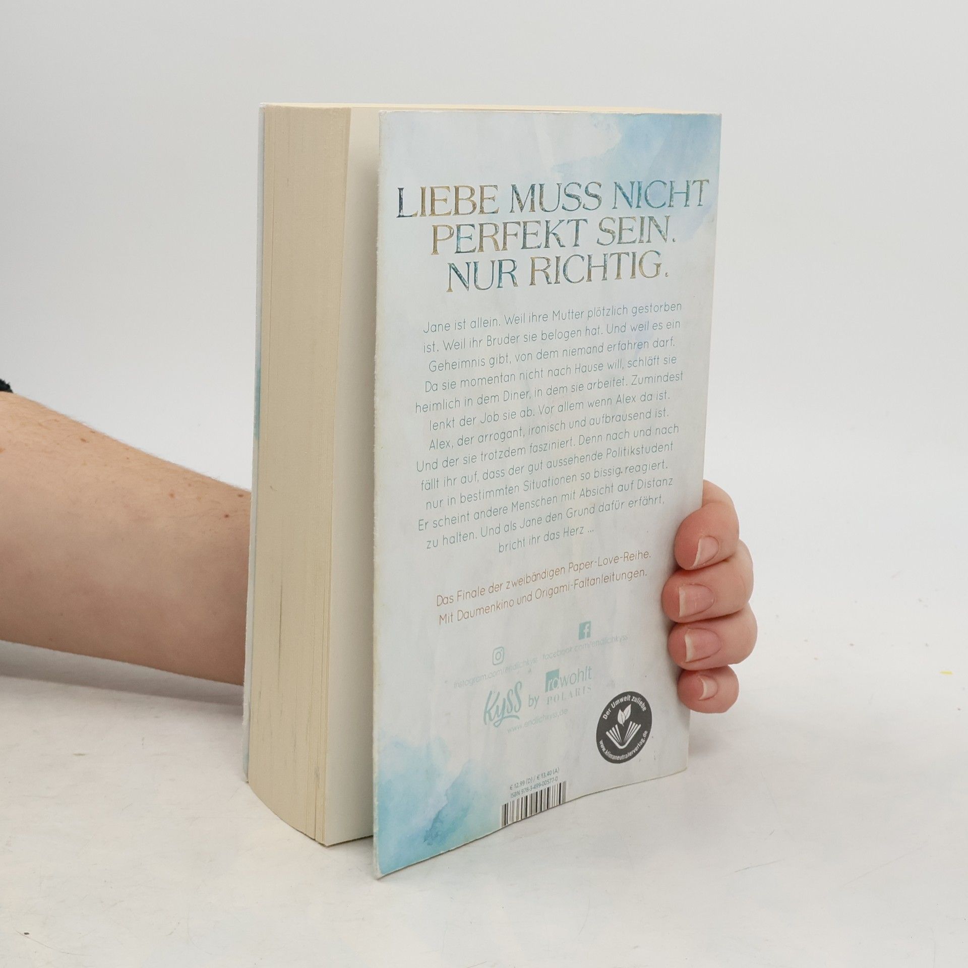 Liebe muss nicht perfekt sein. Nur richtig. Jane ist allein. Weil ihre Mutter plötzlich gestorben ist. Weil ihr Bruder sie belogen hat. Und weil es ein Geheimnis gibt, von dem niemand erfahren darf. Da sie momentan nicht nach Hause will, schläft sie heimlich in dem Diner, in dem sie arbeitet. Zumindest lenkt der Job sie ab. Vor allem wenn Alex da ist. Alex, der arrogant, ironisch und aufbrausend ist. Und der sie trotzdem fasziniert. Denn nach und nach fällt ihr auf, dass der gutaussehende Politikstudent nur in bestimmten Situationen so bissig reagiert. Er scheint andere Menschen mit Absicht auf Distanz zu halten. Und als Jane den Grund dafür erfährt, bricht ihr das Herz … Das Finale der zweibändigen Paper-Love-Reihe Mit Daumenkino und Origami-Faltanleitungen