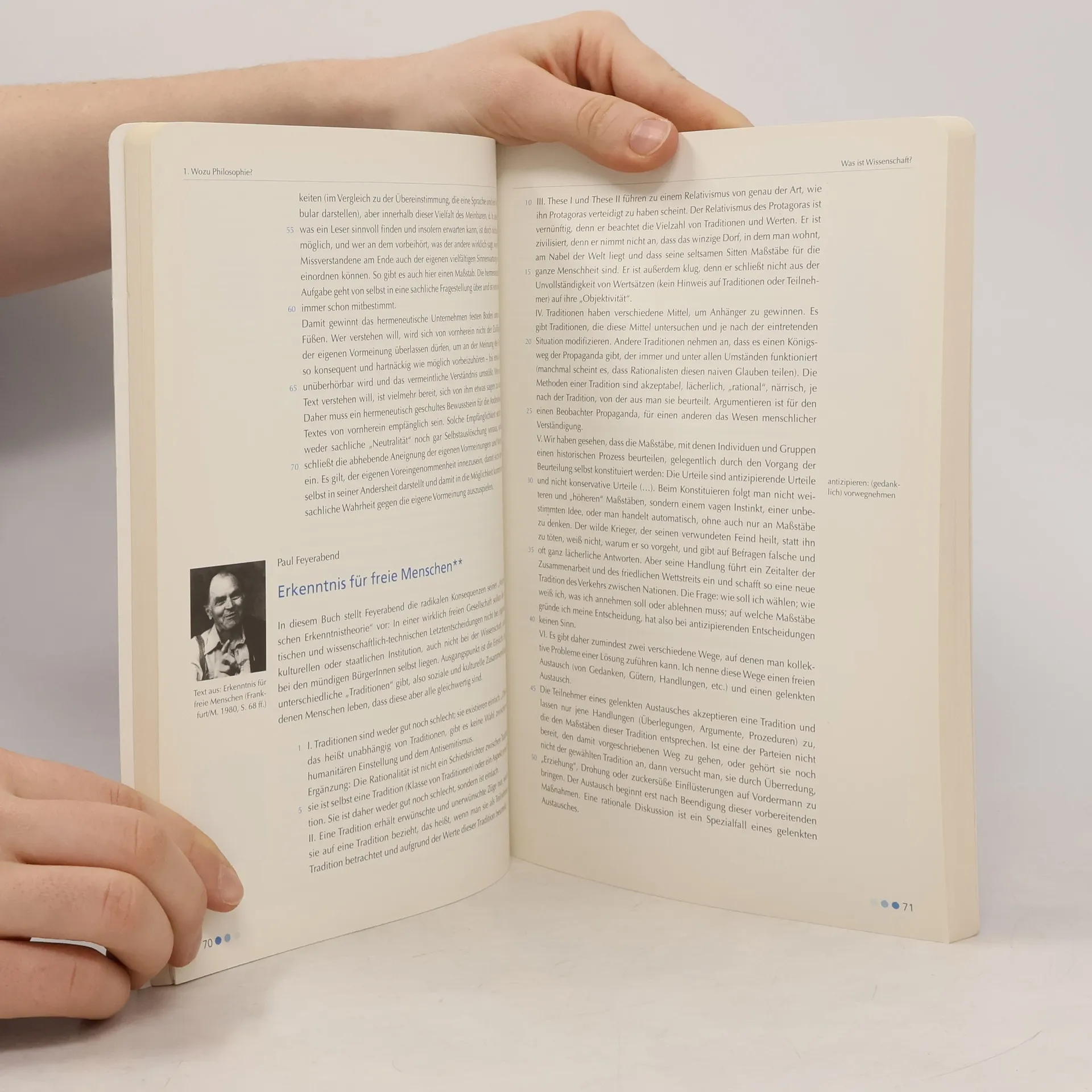 Die Philosophie-Einführung von Konrad Paul Liessmann und Gerhard Zenaty ist seit Jahren Standard und Referenz - in der Bearbeitung durch die junge Autorin Katharina Lacina besonders schüler/innengerecht. Zum Konzept: – Baustein-Konzept: Annäherung, Problemdarstellung anhand exemplarischer Fragestellungen, weiterführende Denkanstöße – einzeln oder in Kombination zu verwenden – kommentierte Originaltexte, gekennzeichnet nach Schwierigkeitsgrad – Anhang mit Glossar (Begriffs- und Philosophenlexikon, Sach- und Personenregister) – Fremdworterklärungen, Querverweise und inhaltliche Orientierungshilfen in der Randspalte – Umfangreiches Lehrerbegleitheft (Lernziele, Kopiervorlagen - z. B. „Philosophische Dialoge“, Arbeitsvorschläge, Literatur- und Webtipps u. v. m.) Neu - 6. Auflage 2018: aktualisierte Ausgabe, inkl. Kompetenzchecks zur persönlichen Lernzielkontrolle am Ende jedes Kapitels