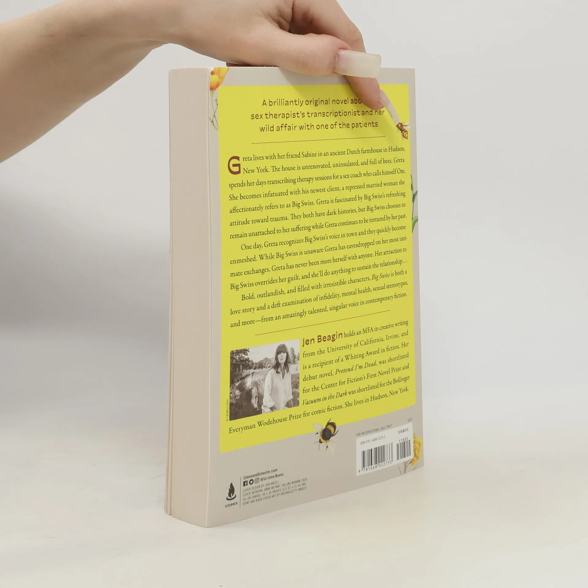 "Greta lives with her friend Sabine in an ancient Dutch farmhouse in Hudson, New York. The house, built in 1737, is unrenovated, uninsulated, and full of bees. Greta spends her days transcribing therapy sessions for a sex coach who calls himself Om. She becomes infatuated with his newest client, a repressed married woman she affectionately refers to as Big Swiss, since she's tall, stoic, and originally from Switzerland. Greta is fascinated by Big Swiss's refreshing attitude toward trauma. They both have dark histories, but Big Swiss chooses to remain unattached to her suffering while Greta continues to be tortured by her past. One day, Greta recognizes Big Swiss's voice at the dog park. In a panic, she introduces herself with a fake name and they quickly become enmeshed. Although Big Swiss is unaware of Greta's true identity, Greta has never been more herself with anyone. Her attraction to Big Swiss overrides her guilt, and she'll do anything to sustain the relationship..."--Provided by publisher
