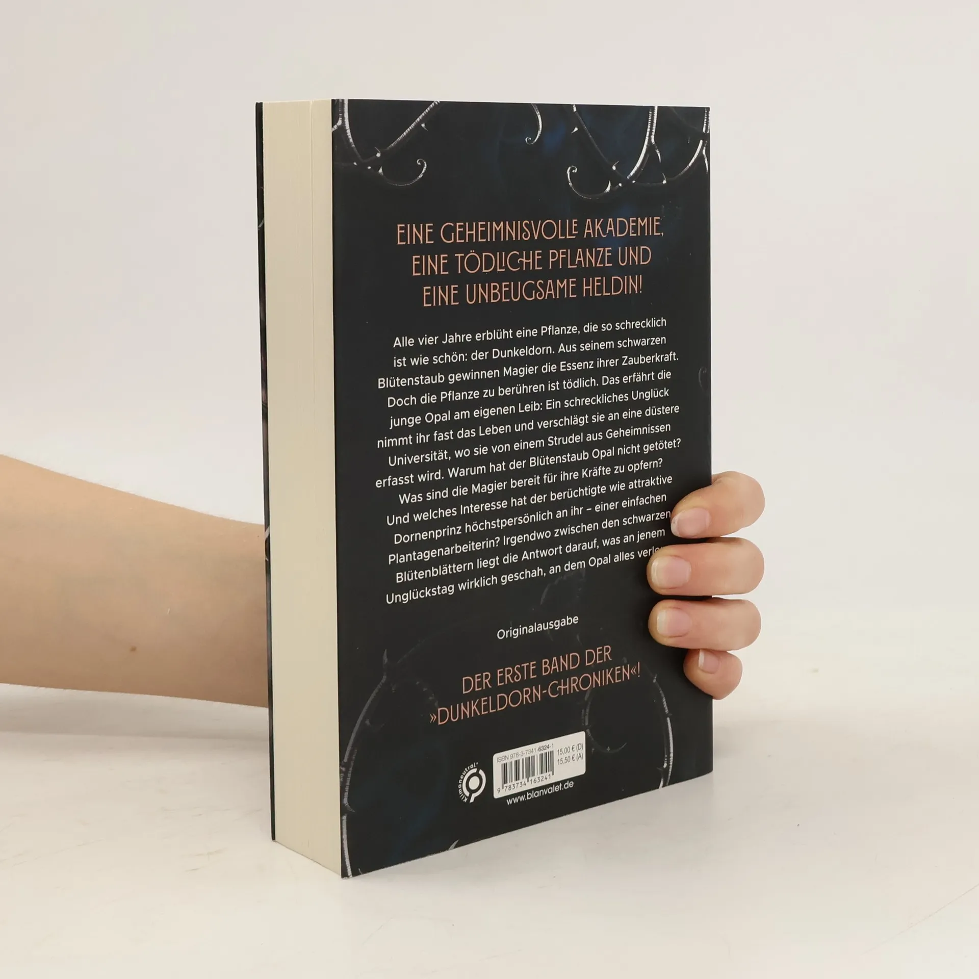 Weder Dornen noch die Liebe können diese unbeugsame Heldin brechen ... Die Dunkeldorn-Chroniken beginnen! Alle vier Jahre erblüht eine Pflanze, die so schrecklich ist wie schön: der Dunkeldorn. Aus seinem schwarzen Blütenstaub gewinnen Magier die Essenz ihrer Zauberkraft. Doch die Pflanze zu berühren ist tödlich. Das erfährt die junge Opal am eigenen Leib: Ein schreckliches Unglück nimmt ihr fast das Leben und verschlägt sie an eine düstere Universität, wo sie von einem Strudel aus Geheimnissen erfasst wird. Warum hat der Blütenstaub Opal nicht getötet? Was sind die Magier bereit für ihre Kräfte zu opfern? Und welches Interesse hat der berüchtigte wie attraktive Dornenprinz höchstpersönlich an ihr – einer einfachen Plantagenarbeiterin? Irgendwo zwischen den schwarzen Blütenblättern liegt die Antwort darauf, was an jenem Unglückstag wirklich geschah, an dem Opal alles verlor … Die Dunkeldorn-Chroniken: 1. Blüten aus Nacht 2. Ranken aus Asche 3. Knospen aus Finsternis