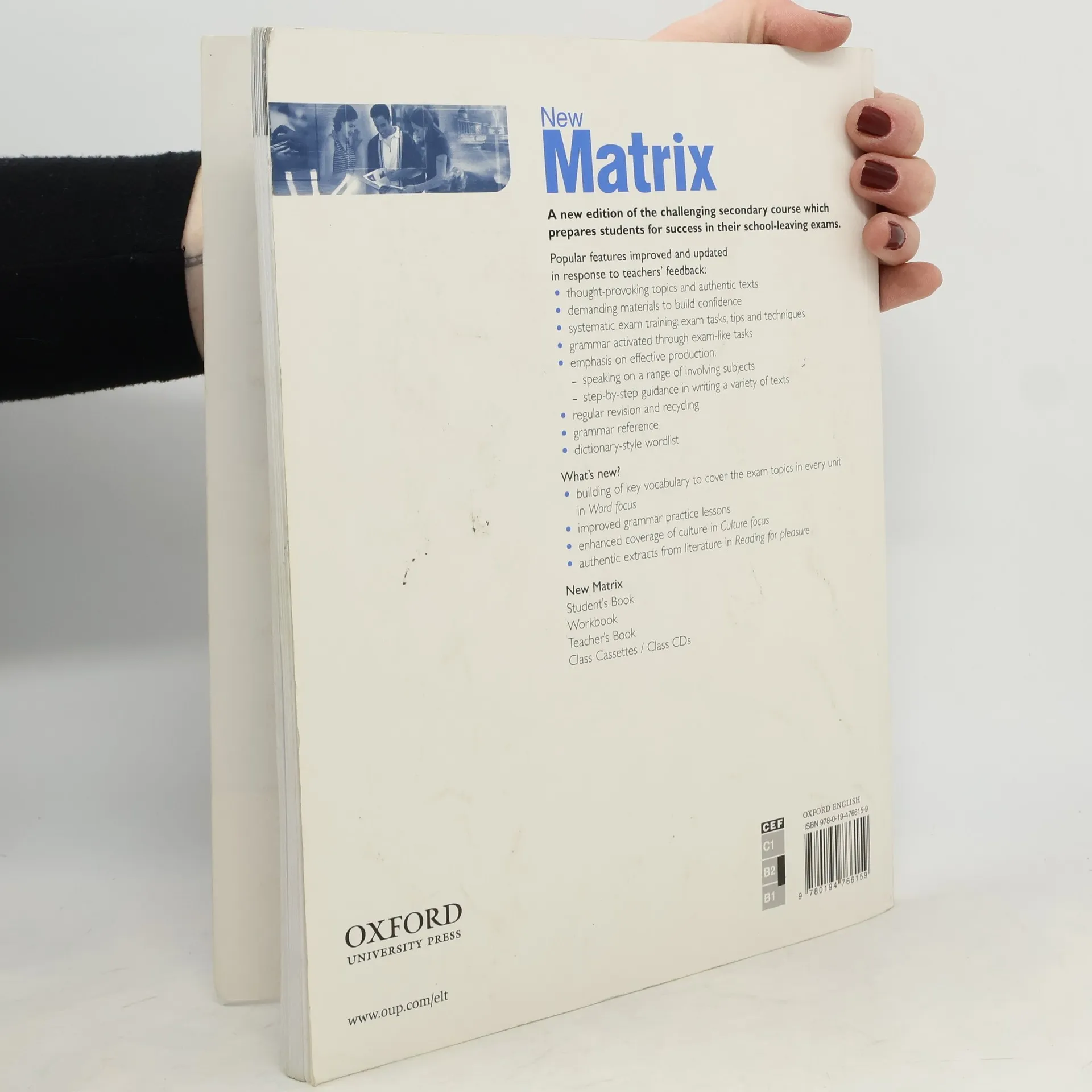 Popular features improved and updated in response to feedback from Matrix users. Systematic building of key vocabulary to cover up-to-date exam topics. Effective production: speaking practice in every lesson on a wide range of topics, and step-by-step guidance for writing a variety of text types. Grammar knowledge checked and activated in use. Strong focus on culture. Exam tips, techniques, and practice of exam-type tasks to give students confidence in the exam.