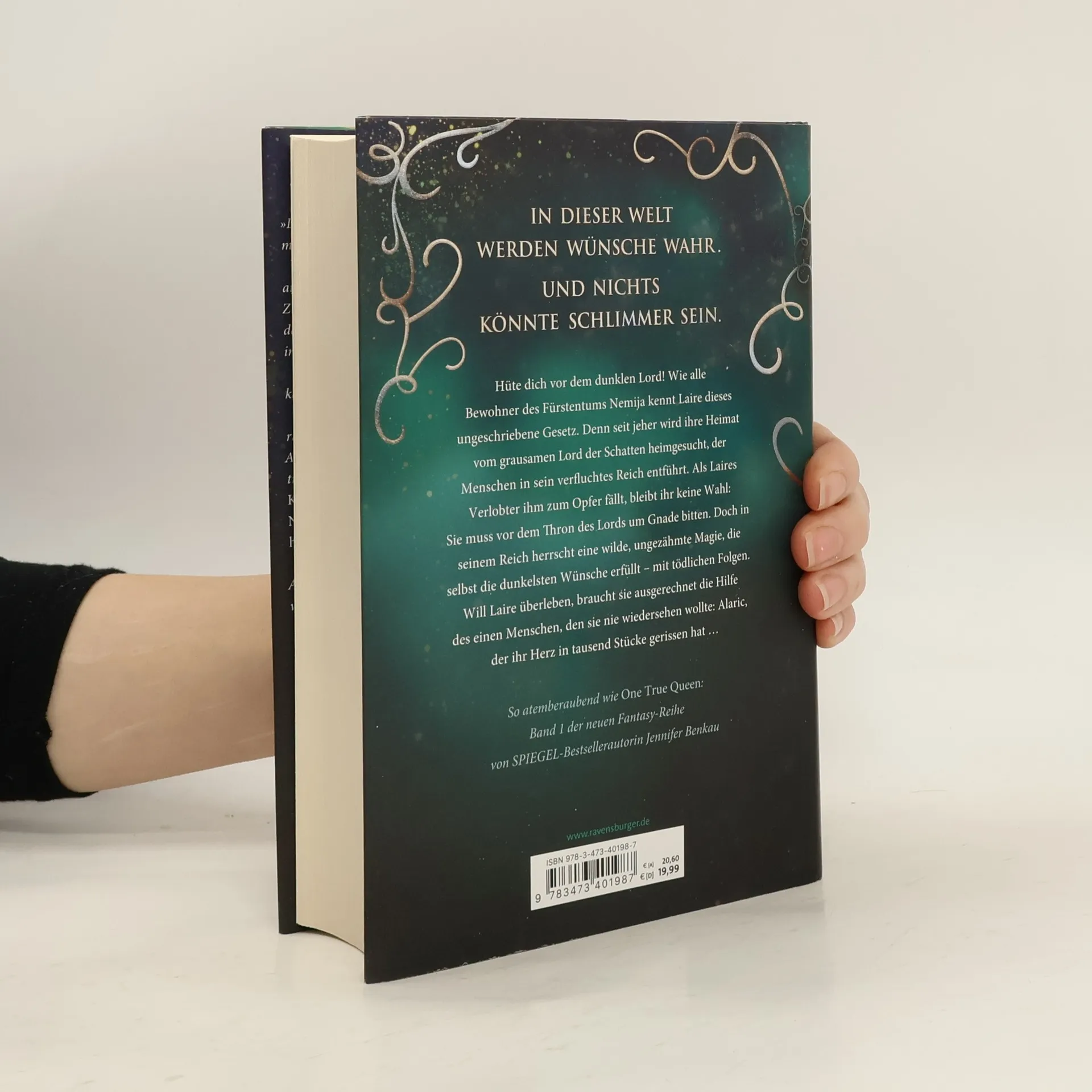 In dieser Welt werden Wünsche wahr – und das kann verheerende Folgen haben. Laire, eine Bewohnerin von Nemija, fürchtet den grausamen Lord der Schatten, der Menschen in sein verfluchtes Reich entführt. Als ihr Verlobter ihm zum Opfer fällt, bleibt Laire nichts anderes übrig, als um Gnade zu bitten. Doch in diesem Reich herrscht eine gefährliche Magie, und um zu überleben, benötigt sie die Hilfe des Mannes, den sie nie wiedersehen wollte: Alaric, der ihr Herz gebrochen hat. Die Geschichte ist episch, herzzerreißend und atemberaubend und gehört zur romantischen High-Fantasy-Reihe der Bestsellerautorin Jennifer Benkau. Ihre Romantasy-Reihen „One True Queen“, „Das Reich der Schatten“ und „The Lost Crown“ spielen in derselben fantastischen Welt, können jedoch unabhängig voneinander gelesen werden. Die Reihenfolge der Veröffentlichungen ist wie folgt: - One True Queen, Band 1: Von Sternen gekrönt - One True Queen, Band 2: Aus Schatten geschmiedet - Das Reich der Schatten, Band 1: Her Wish So Dark - Das Reich der Schatten, Band 2: His Curse So Wild - The Lost Crown, Band 1: Wer die Nacht malt - The Lost Crown, Band 2: Wer das Schicksal zeichnet Zusätzlich gibt es die New-Adult-Romance-Reihe von Jennifer Benkau: - A Reason To Stay (Liverpool-Reihe 1) - A Reason To Hope (Liverpool-Reihe 2)
