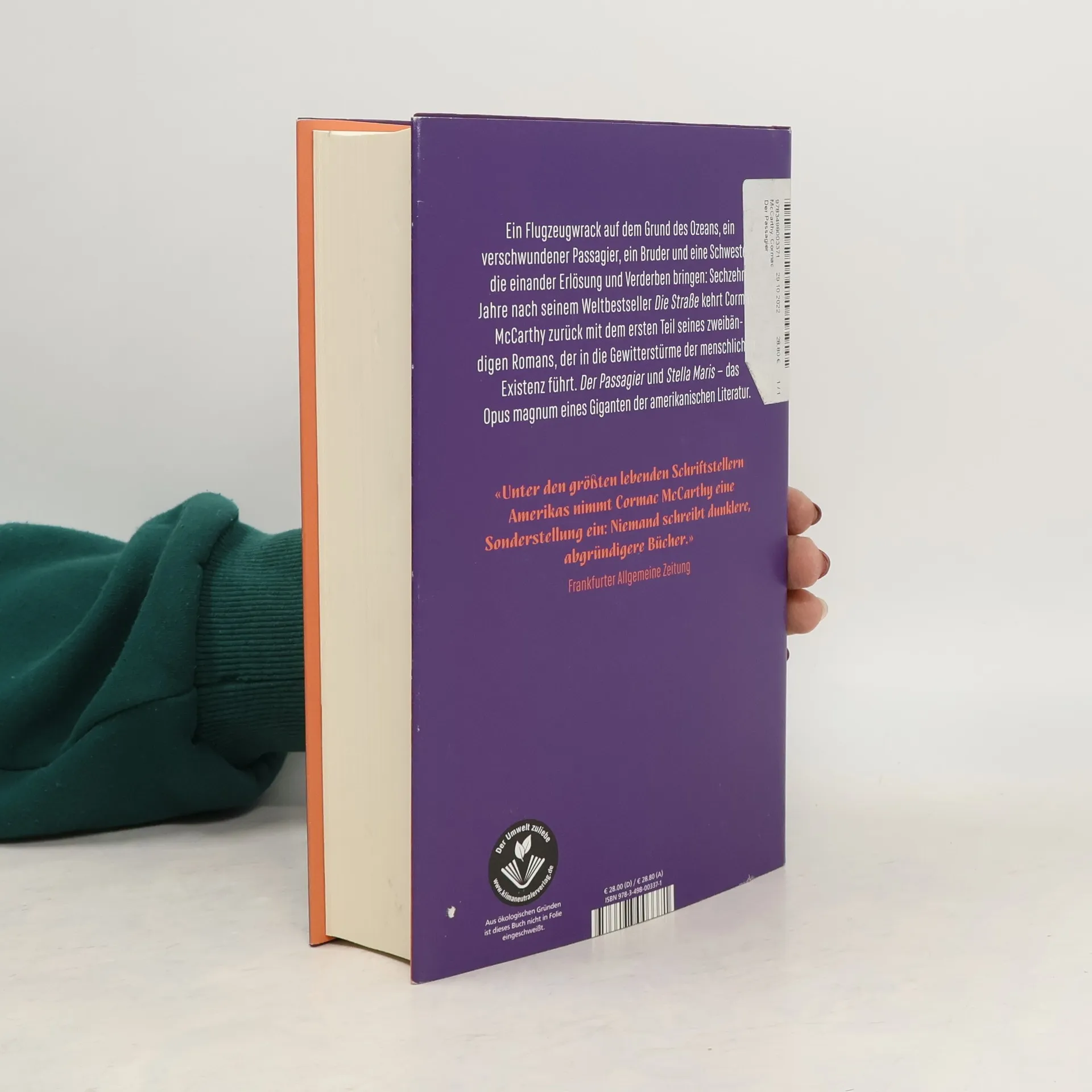 Sechzehn Jahre nach seinem Weltbestseller kehrt Pulitzer-Preisträger Cormac McCarthy mit dem ersten Teil seines zweibändigen Meisterwerks zurück. In der Geschichte von 1980, Pass Christian, Mississippi, taucht Bobby Western, ein Bergungstaucher mit Tiefenangst, in die dunklen Gewässer hinab zu einem abgestürzten Jet Star. Im Wrack entdeckt er neun Leichen, doch der Flugschreiber und der zehnte Passagier fehlen. Bald wird ihm klar, dass er in eine viel größere Angelegenheit verwickelt ist. Er wird von skrupellosen Männern verfolgt und wird von Erinnerungen an seinen Vater, der an der Erfindung der Atombombe beteiligt war, sowie der Trauer um seine Schwester, die seine große Liebe und sein größtes Verderben war, heimgesucht. Der Passagier führt den Leser durch die mythischen Räume der USA, von den geschwätzigen Kneipen New Orleans‘ über die sumpfigen Bayous bis zur Einsamkeit Idahos und einer verlassenen Ölplattform vor Florida. Es ist ein atemberaubender Roman über Moral und Wissenschaft, das Erbe von Schuld und den Wahnsinn des menschlichen Bewusstseins.
