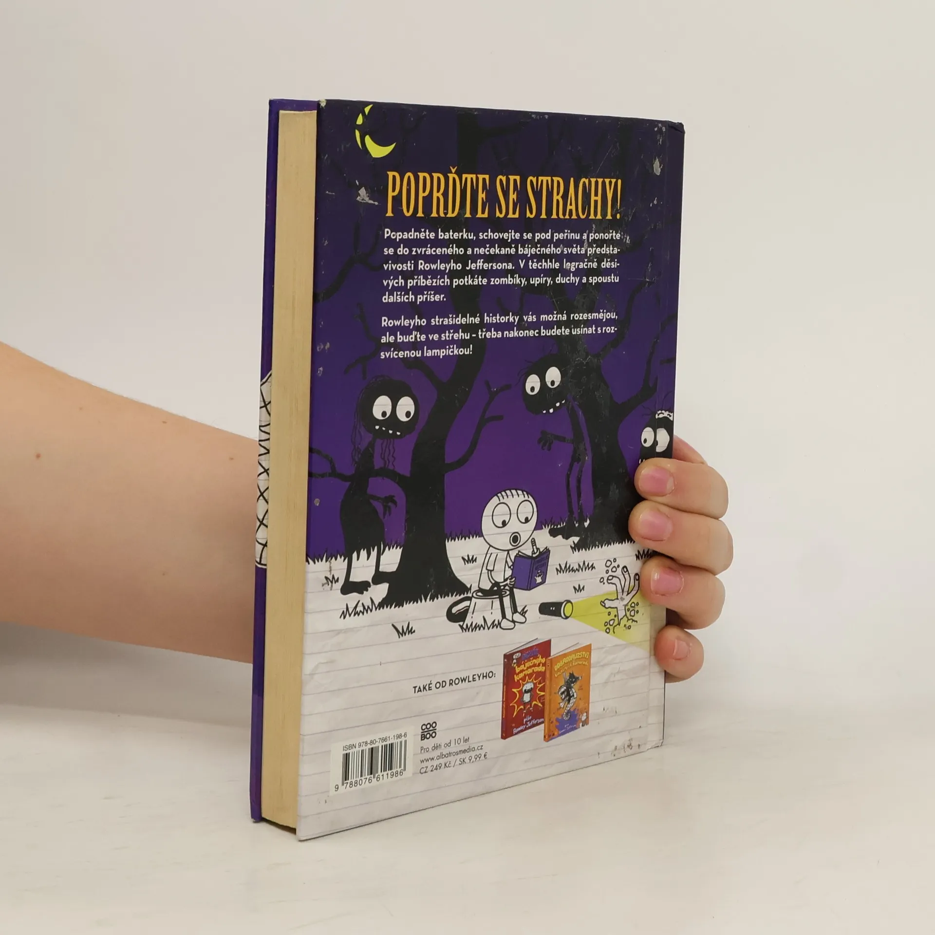 Popadněte baterku, schovejte se pod peřinu a vydejte se do strašidelného světa, který vznikl v bujné fantazii Rowleyho Jeffersona! V těchto legračně děsivých příbězích potkáte zombíky, upíry, duchy a spoustu dalších příšer. Rowleyho strašidelné historky vás možná rozesmějou, ale buďte ve střehu – možná nakonec budete chtít usínat s rozsvícenou lampičkou!