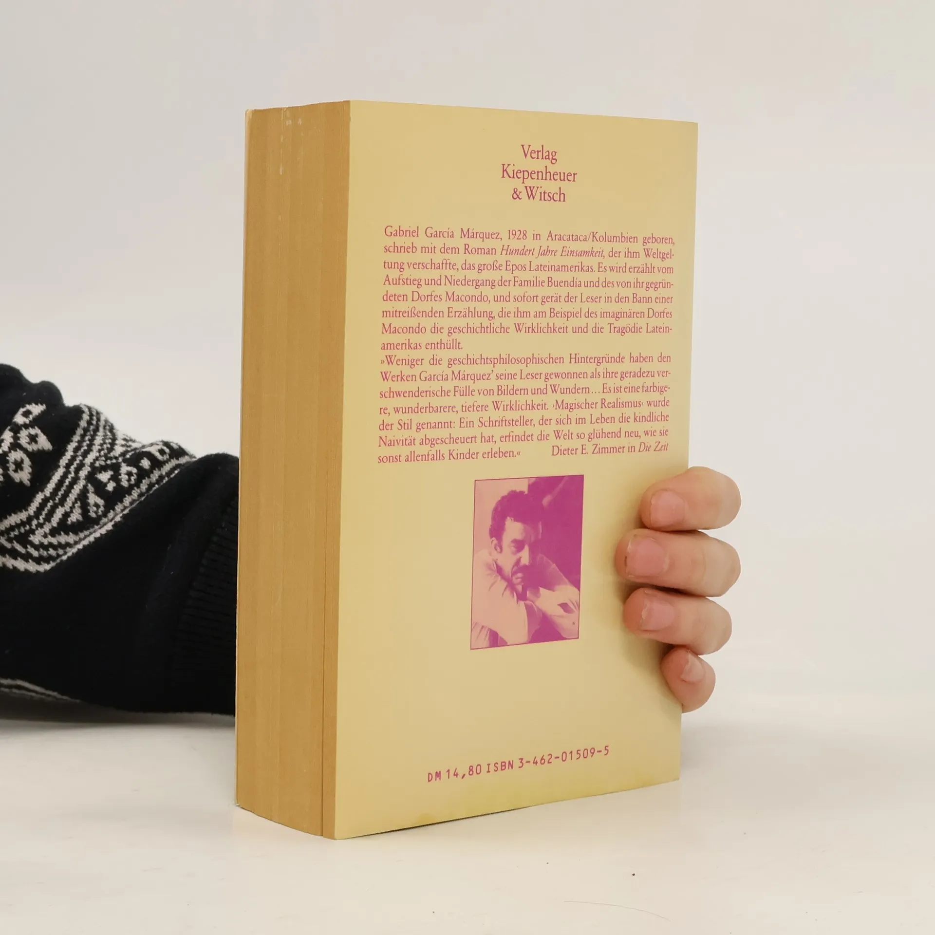 Gabriel García Márquez, 1928 in Aracataca/Kolumbien geboren, schrieb mit dem Roman Hundert Jahre Einsamkeit , der ihm Weltgeltung verschaffte, das große Epos Lateinamerikas. Es wird erzählt vom Aufstieg und Niedergang der Familie Buendía und des von ihr gegründeten Dorfes Macondo, und sofort gerät der Leser in den Bann einer mitreißenden Erzählung, die ihm am Beispiel des imaginären Dorfes Macondo die geschichtliche Wirklichkeit und die Tragödie Lateinamerikas enthüllt. »Weniger die geschichtsphilosophischen Hintergründe haben den Werken García Márquez' seine Leser gewonnen als ihre geradezu verschwenderische Fülle von Bildern und Wundern... Es ist eine farbigere, wunderbarere, tiefere Wirklichkeit. ›Magischer Realismus‹ wurde der Stil genannt: Ein Schriftsteller, der sich im Leben die kindliche Naivität abgescheuert hat, erfindet die Welt so glühend neu, wie sie sonst allenfalls Kinder erleben.« -- Dieter E. Zimmer in Die Zeit