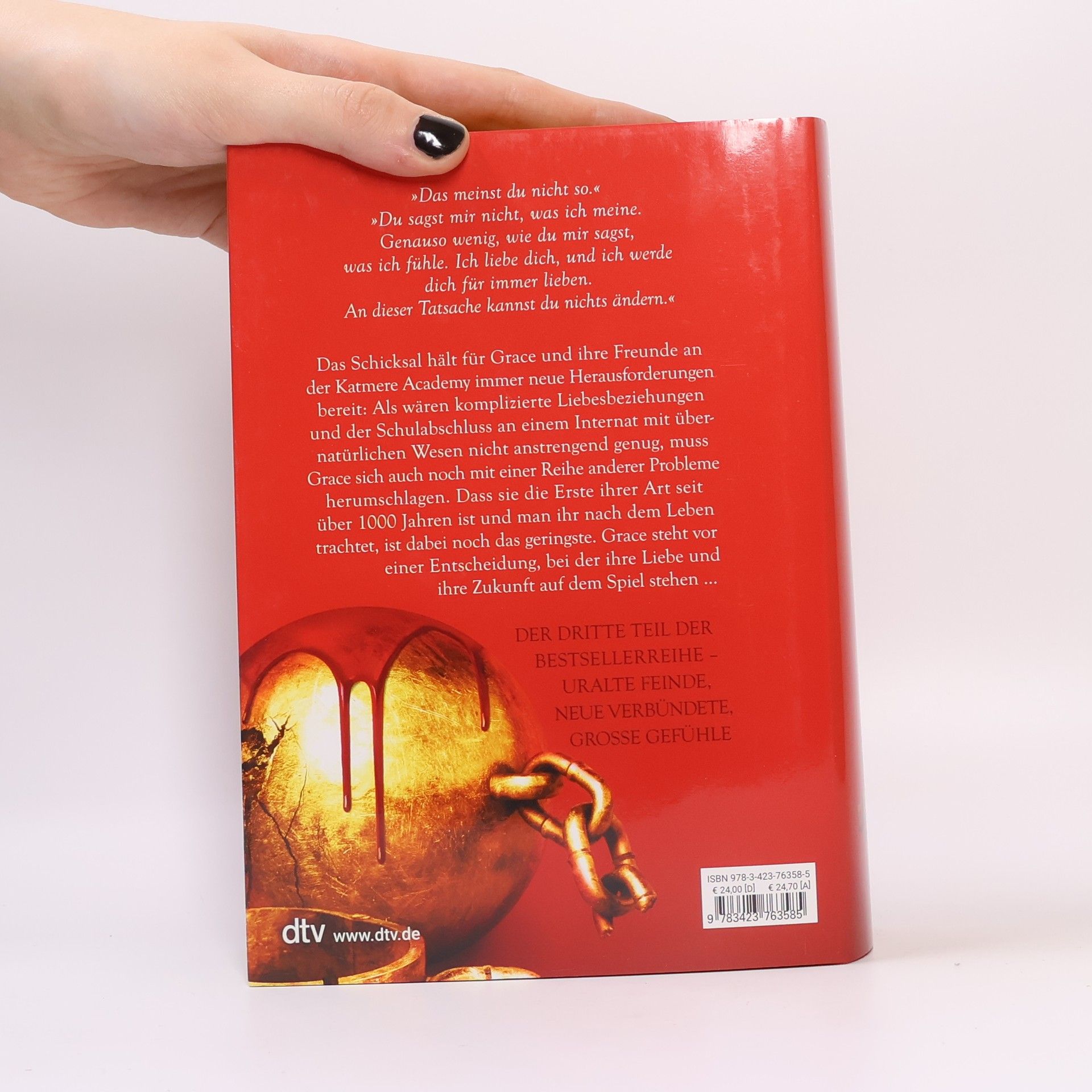 Traust du dich, das Schicksal herauszufordern? Das Schicksal hält für Grace und ihre Freunde an der Katmere Academy immer neue Herausforderungen bereit: Als wären komplizierte Liebesbeziehungen und der Schulabschluss an einem Internat mit übernatürlichen Wesen nicht anstrengend genug, muss Grace sich auch noch mit einer Reihe anderer Probleme herumschlagen. Dass sie die Erste ihrer Art seit über 1000 Jahren ist und man ihr nach dem Leben trachtet, ist dabei noch das geringste. Grace steht vor einer Entscheidung, bei der ihre Liebe und ihre Zukunft auf dem Spiel stehen … Alle Bände der Katmere-Academy-Chroniken: Band 1: Crave Band 2: Crush Band 3: Covet Band 4: Court Band 5: Charm Band 6: Cherish Die Bände sind nicht unabhängig voneinander lesbar.