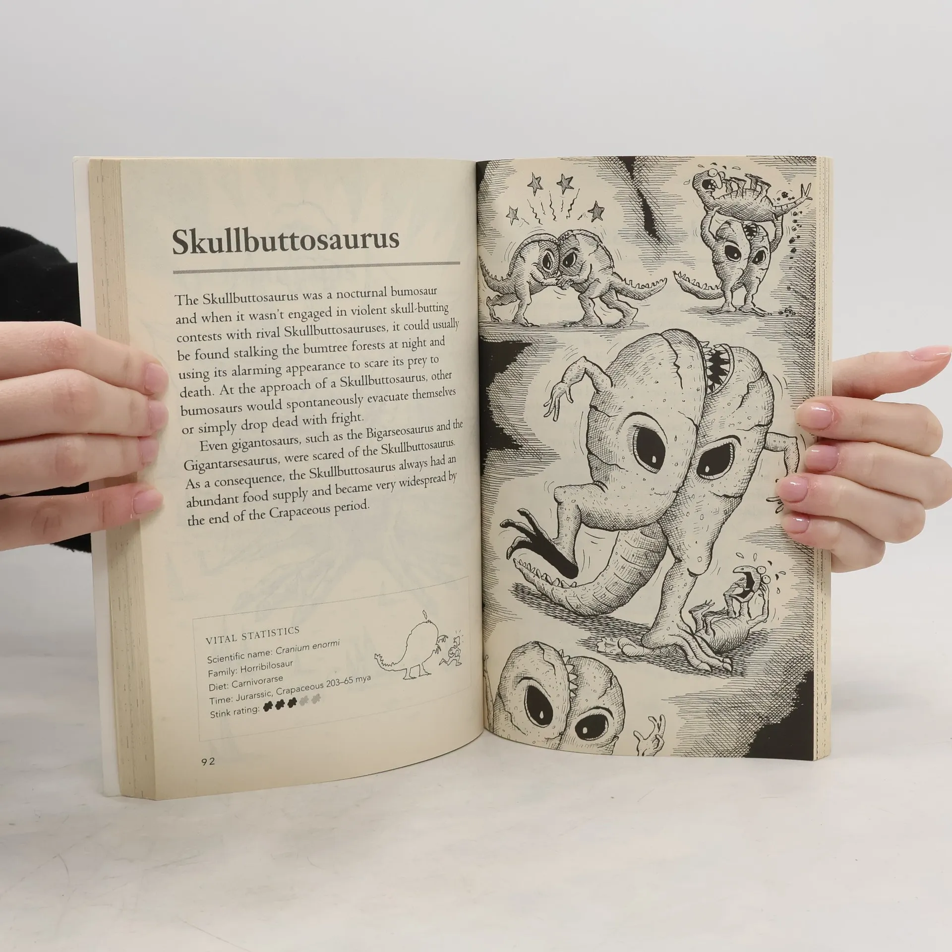 - Why was the Tyrannosore-arse Rex so angry?- Where did Bogasauruses live?- How many cheeks did a Tricerabutt have?- Was the Bumheaded idiotasaurus the most stupid bumosaur?- When did the bumosaurs become exstinkt?Find the answers to these and many other questions in this fully-illustrated guide to prehistoric bumosaur life. Covering the Pre-Crappian era through to the Post-Crapaceous, this essential reference will thrill, amaze and inform the whole family. Never again will you look like a fool when somebody asks: "What bumosaur is that?"