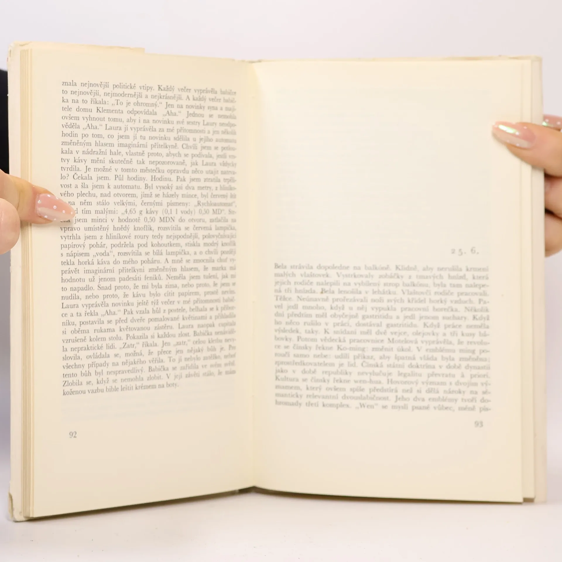 Dosti nezvyklou formou psaný román je moderní obdobou vyprávění Šeherezády. Autorka vypráví o dvou mladých lidech, kteří se spolu vydají na svatební cestu do Jugoslávie. Mladý muž, který je atomový fyzik, se i na této cestě věnuje především svým odborným problémům: dívka se snažírozptýlit jej a vypráví mu každý večer krátkou zábavnou historku. Některé z těchto příběhů připomínají osobní hrdinčiny vzpomínky a zážitky, jiné jsou absurdními fantastickými příběhy často až na hranici černého humoru.