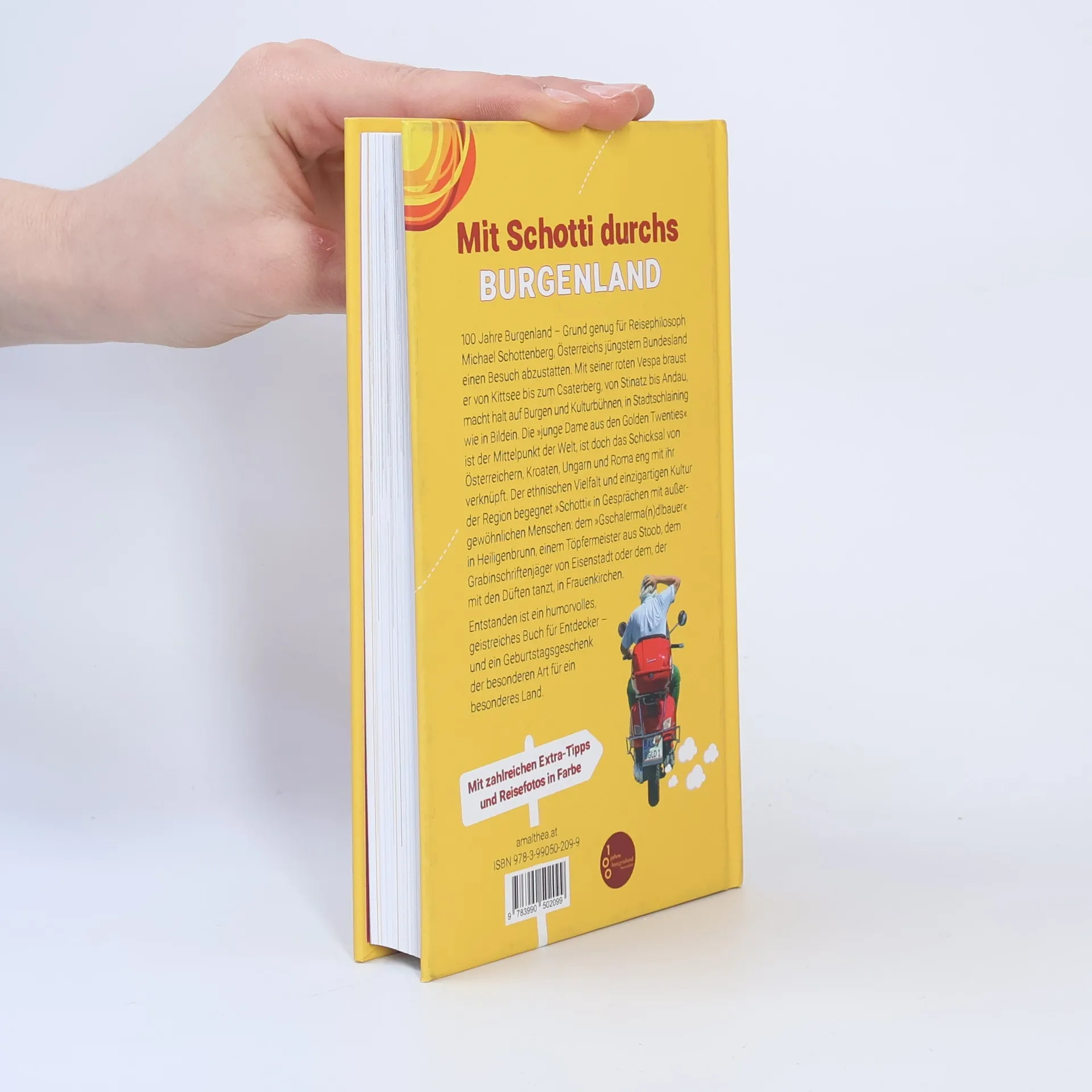 100 Jahre Burgenland – Grund genug für Reisephilosoph Michael Schottenberg, Österreichs jüngstem Bundesland einen Besuch abzustatten. Mit seiner roten Vespa braust er von Kittsee bis zum Csaterberg, von Stinatz bis Andau, macht halt auf Burgen und Kulturbühnen, in Stadtschlaining wie in Bildein. Die »junge Dame aus den Golden Twenties« ist der Mittelpunkt der Welt, ist doch das Schicksal von Österreichern, Kroaten, Ungarn und Roma eng mit ihr verknüpft. Der ethnischen Vielfalt und einzigartigen Kultur der Region begegnet »Schotti« in Gesprächen mit außergewöhnlichen Menschen: dem »Gschalerma(n)dlbauer« in Heiligenbrunn, einem Töpfermeister aus Stoob, dem Grabinschriftenjäger von Eisenstadt oder dem, der mit den Düften tanzt, in Frauenkirchen. Entstanden ist ein humorvolles, geistreiches Buch für Entdecker – und ein Geburtstagsgeschenk der besonderen Art für ein besonderes Land.
