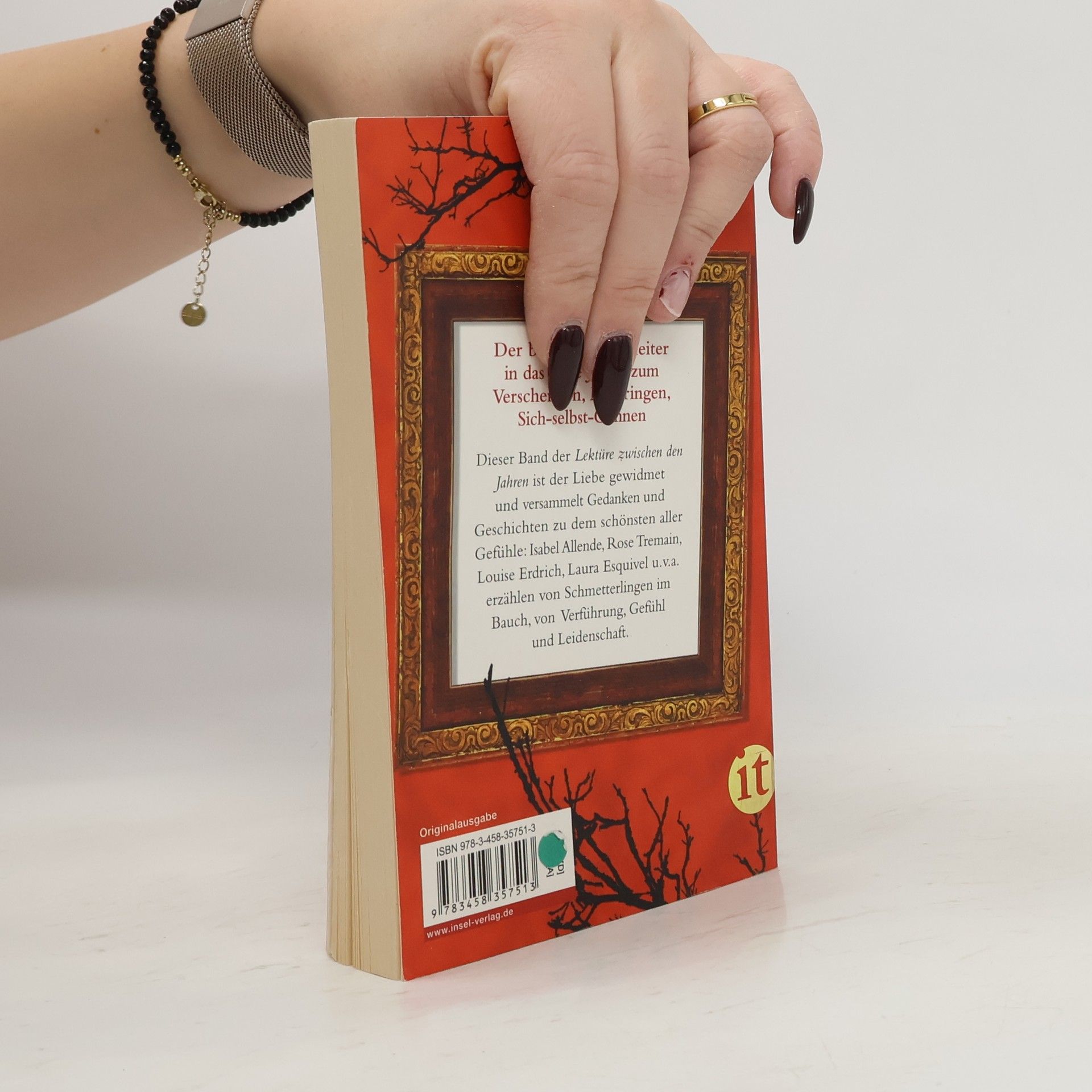 Seit über dreißig Jahren lädt die „Lektüre zwischen den Jahren“ ihre Leser zum Innehalten und Nachdenken ein. Nun präsentiert sie sich in neuer Geschenkbuchausstattung. Der Band auf das Jahr 2011 ist der Liebe gewidmet und versammelt die schönsten Gedanken und Geschichten zu diesem unvergänglichen Thema. Isabel Allende, Rose Tremain, Louise Erdrich, Laura Esquivel u. v. a. erzählen von Schmetterlingen im Bauch, von Verführung, Gefühl und Leidenschaft.