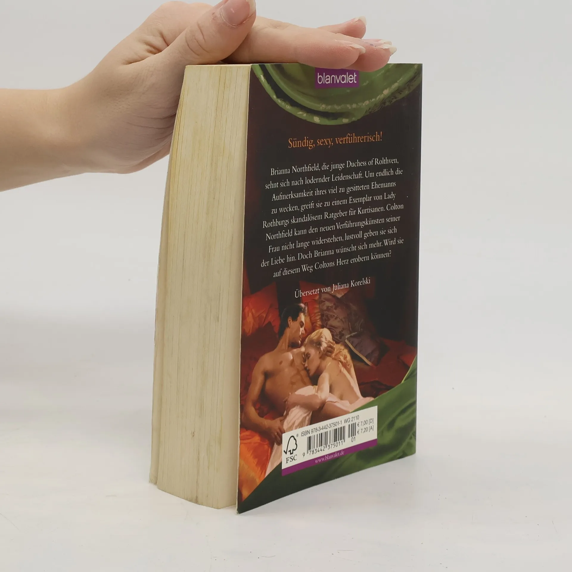 Ein sinnlicher Roman über eine unanständige Lady und ein sehr unzüchtiges Buch Brianna Northfield, die junge Duchess of Rolthven, sehnt sich nach lodernder Leidenschaft. Um endlich die Aufmerksamkeit ihres viel zu gesitteten Ehemanns zu wecken, greift sie zu einem Exemplar von Lady Rothburgs skandalösem Ratgeber für Kurtisanen. Colton Northfield kann den neuen Verführungskünsten seiner Frau nicht lange widerstehen, lustvoll geben sie sich der Liebe hin. Doch Brianna wünscht sich mehr. Wird sie auf diesem Weg Coltons Herz erobern können?